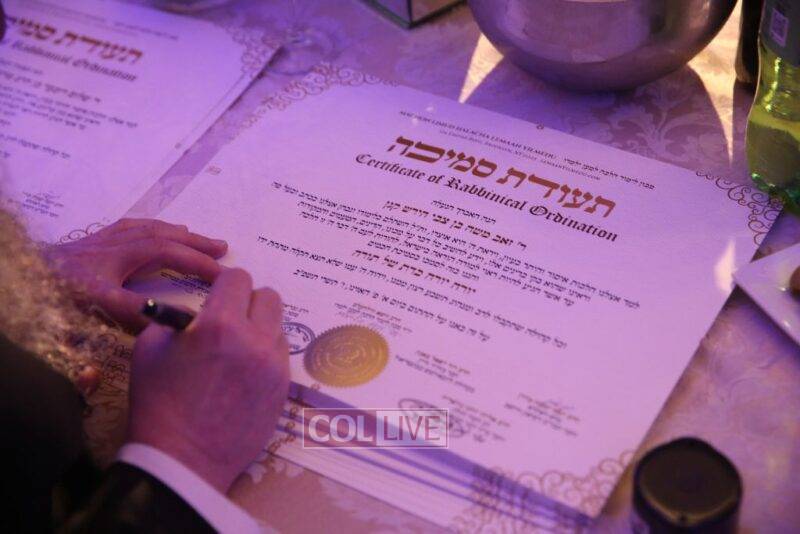 In the beautiful Oholei Torah hall, the newly ordained rabbis gathered with their families who came from near and far to share in their simcha. They were greeted with a huge sign that announced that this was a “Chag Ha’Semicha” and the excited participants filled the hall.