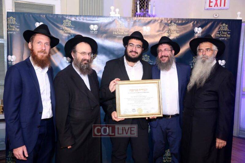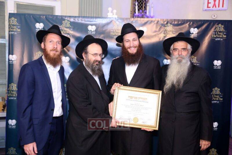 Then came the part of the program everyone was waiting for, the awarding of the semicha certificates. The Machon had beautiful certificates prepared with the signatures of seven rabbanim, the members of the semicha vaad (in alef-beis order): Rabbi Gedalia Oberlander – rav Beis Menachem Chabad in Monsey; Rabbi Dovid Refoel Banon – member of the beis din and dayan in the Chabad community in Montreal; Rabbi Yosef Yeshaya Braun – Mara d’Asra and member of the Crown Heights beis din; Rabbi Yochanan Gurary – member of the Beis Din Rabbani Chabad in Eretz Yisrael and rav of Holon; Rabbi Zushe Wilhelm – director of the Machon Lemaan Yilmedu in the United States; Rabbi Gavriel Zinner – posek and author of Nitai Gavriel; Rabbi Dovid Schochet – rav of the Chabad community in Toronto.