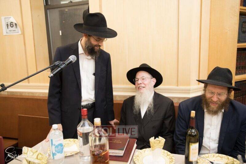 The event was also a celebration of a siyum masechta on Masechas Shabbos, for a Shiur taught daily by Rabbi Fishel Oster in Merkaz Avreichim.
