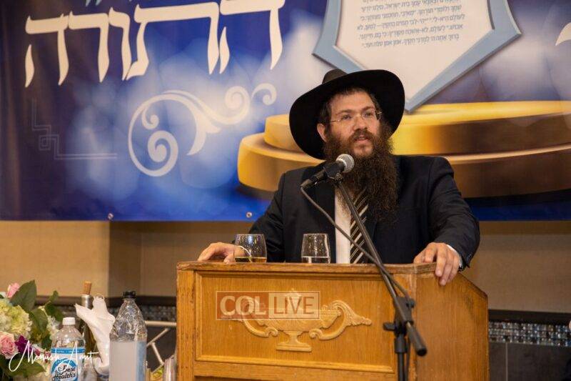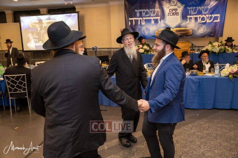 Rabbi Beryl Junik, a co-sponsor of the event along with his partners in the Unity Torah campaign Rabbi Shloimy Greenwald and R’ Zalmy Cohen, spoke about his grandfather Rabbi Naftali Junik obm, who was one of the founders of the Daf Yomi Shiur in Montreal. He related how the Rebbe gave special brachos and chizuk for that Shiur, and the many brachos which are received by those who participate.