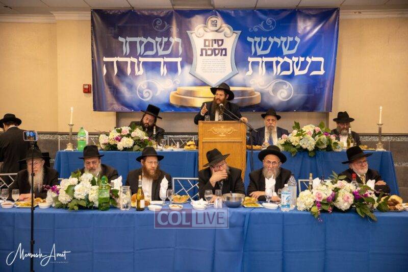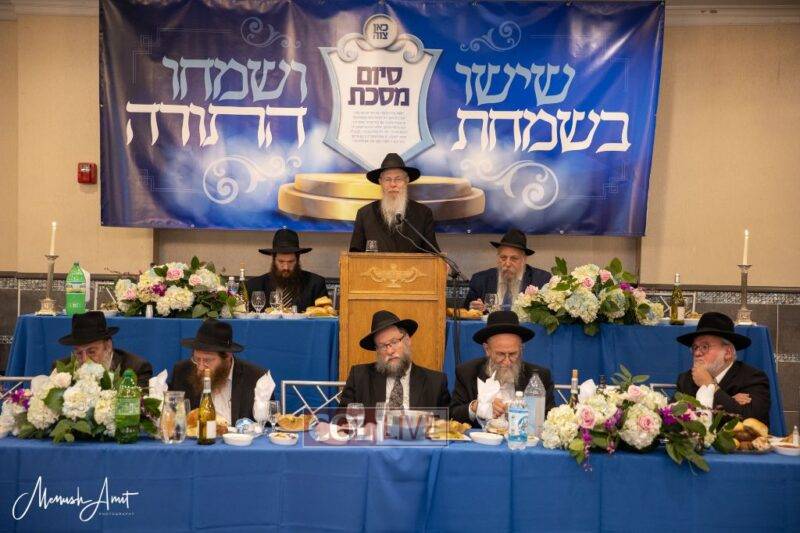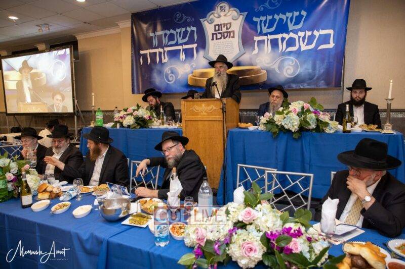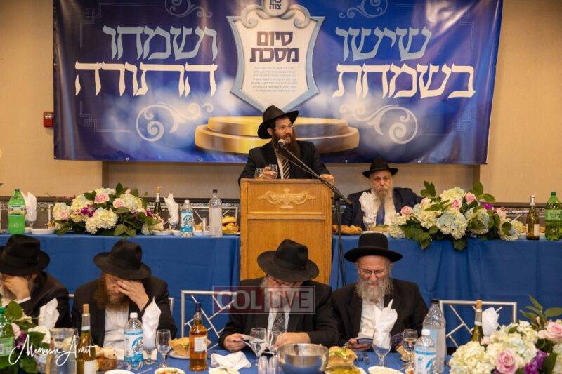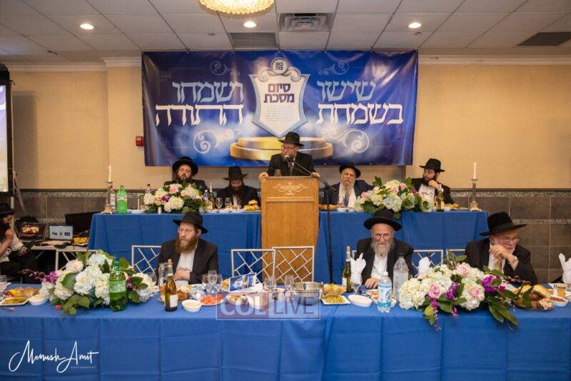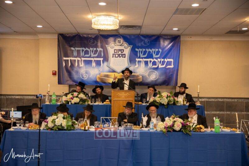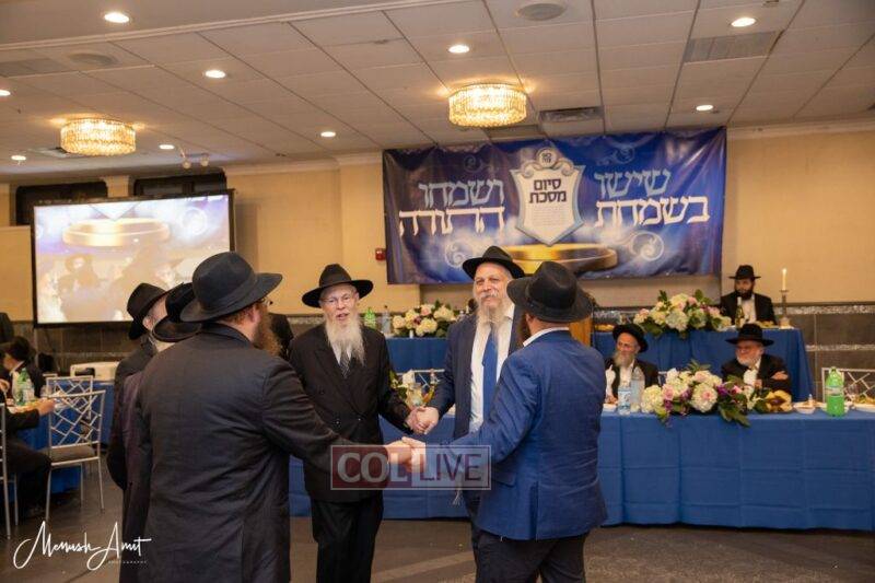 Whereas in the past, each class or Shul with a daily Shiur would have made a private Siyum at their Shul, and individuals learning at home or with Chavrusos would also have done a private Siyum, this year, as the Siyum was in close proximity to the Nine Days in which the Rebbe requests large public Siyumim, a collective Siyum was held.
