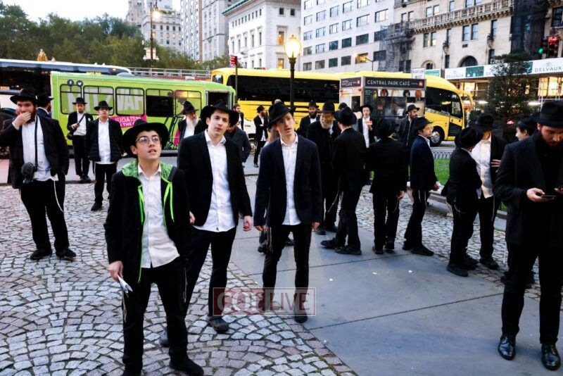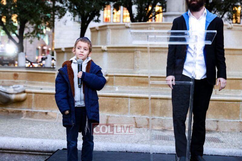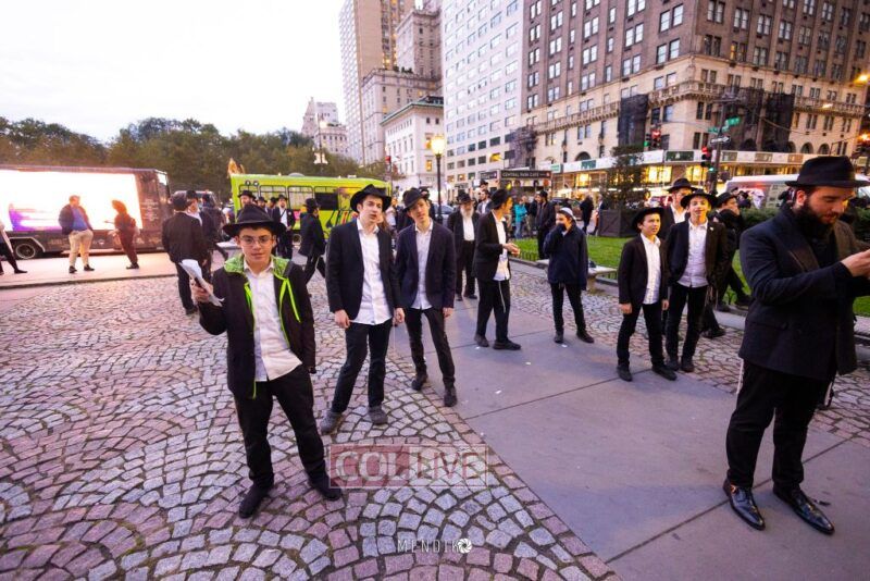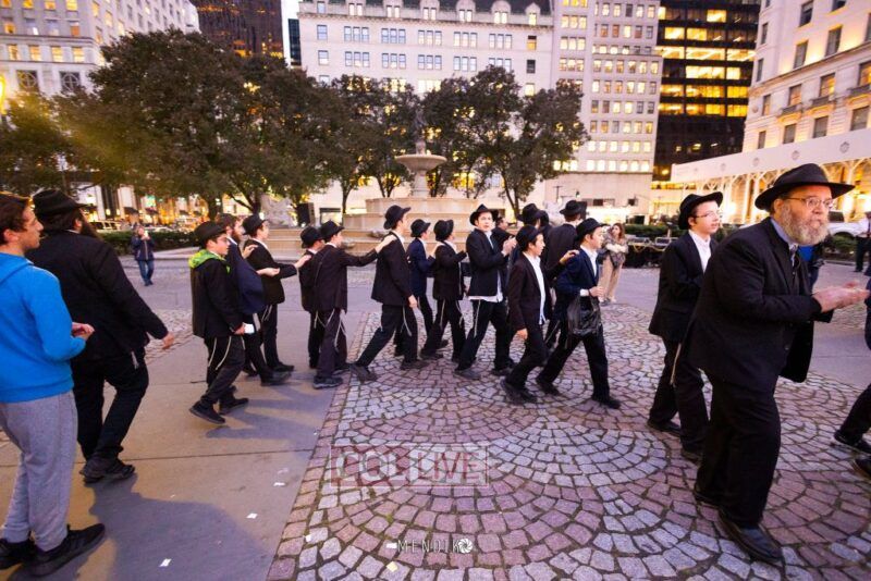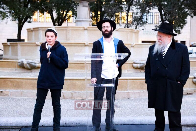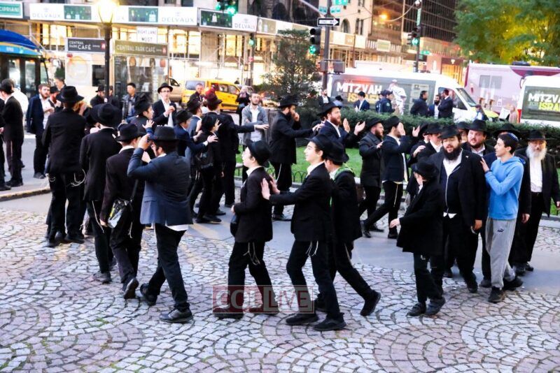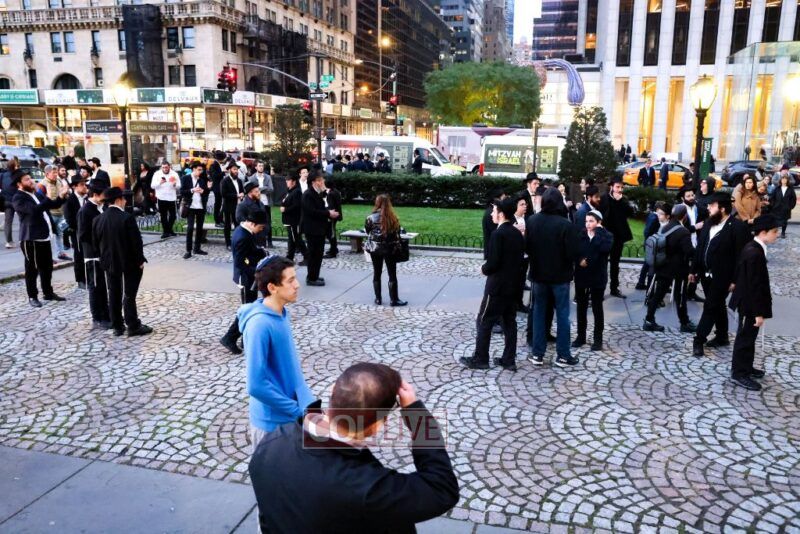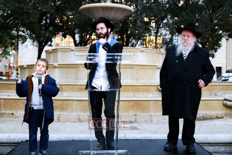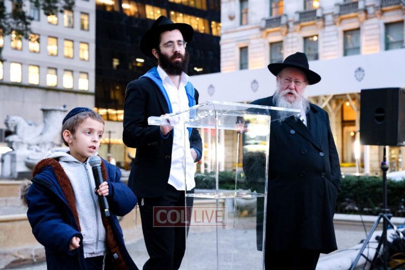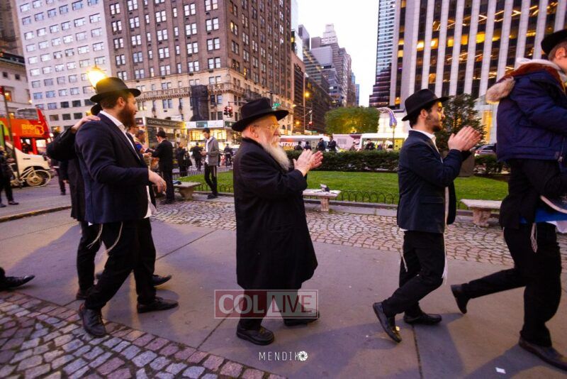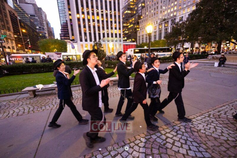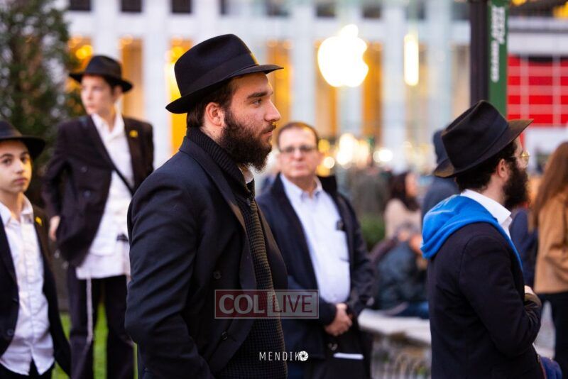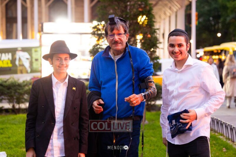 Earlier in the day, “Mitzvah Tanks” paraded from Brooklyn to Manhattan and were stationed at over 15 points around the city, as part of the campaign to spread light and good deeds amid the ongoing war in Israel.