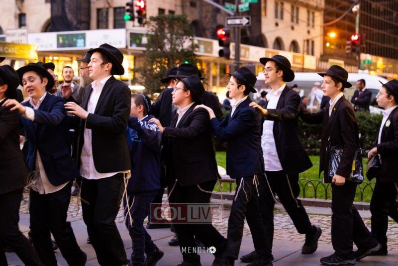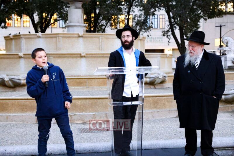 The event was the culmination of “A Day of Good Deeds,” which began with a Mitzvah Tank Parade which departed from 770 Eastern Parkway and drove through Brooklyn and Manhattan.