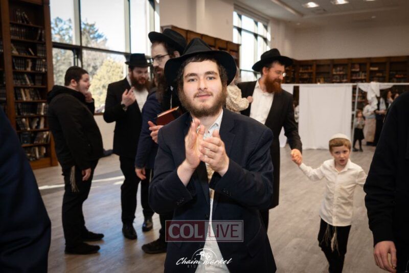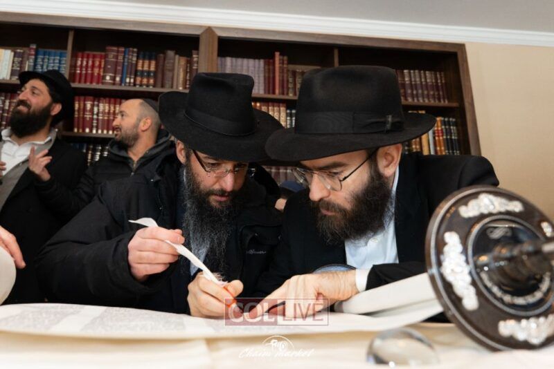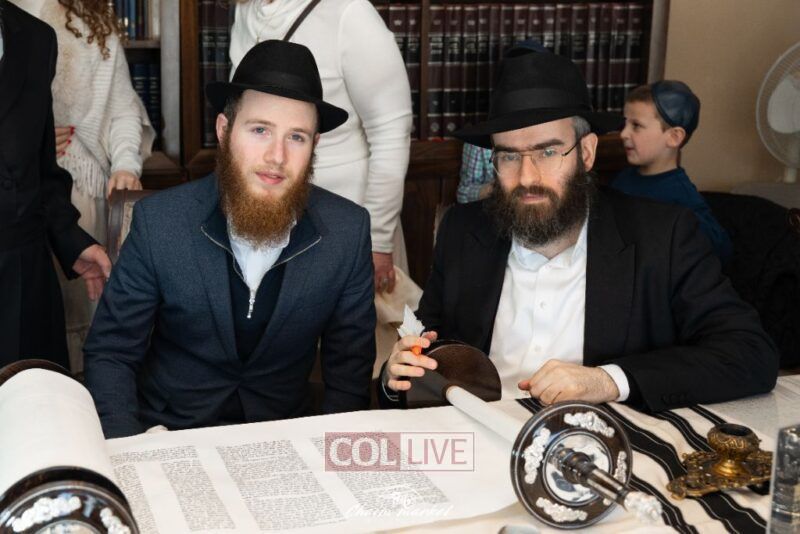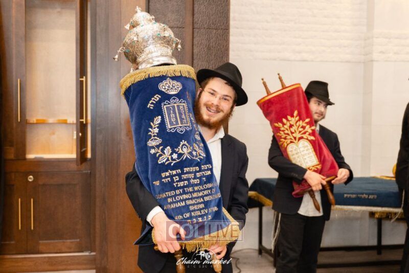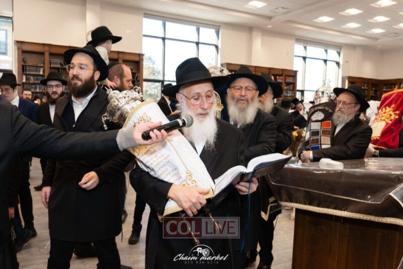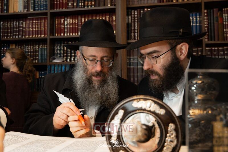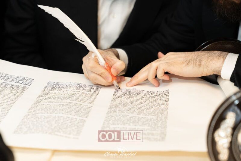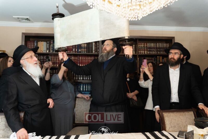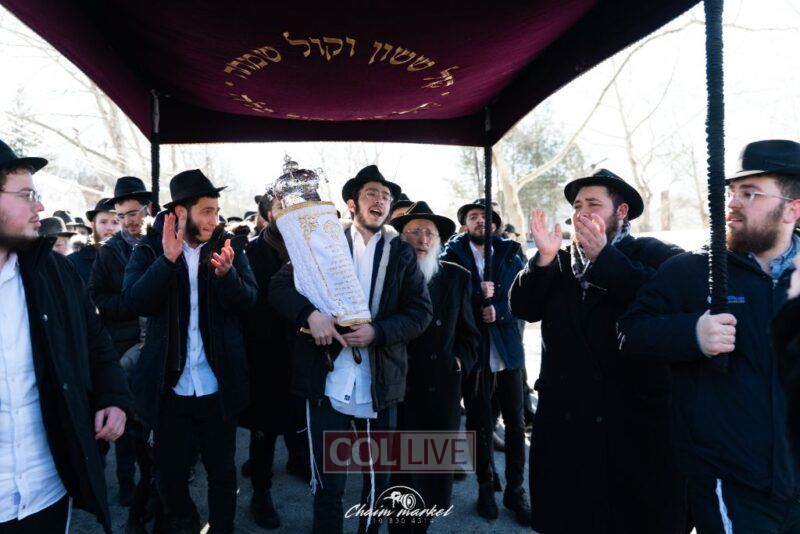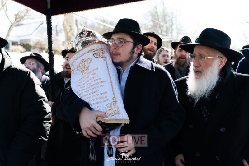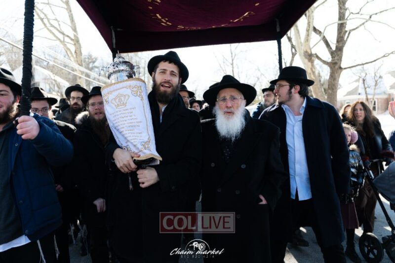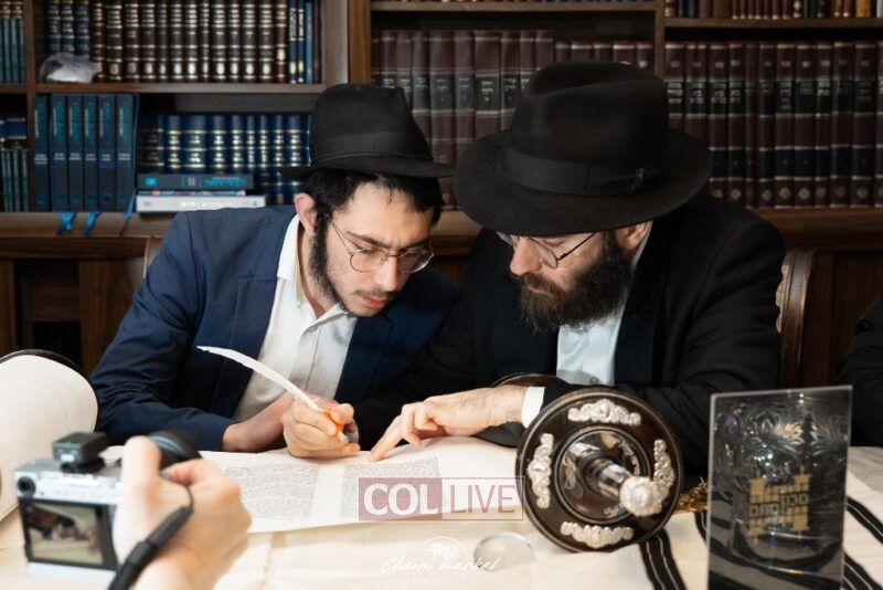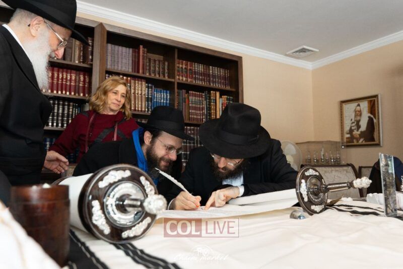 The writing of the final letters began at the Spalter home, followed by a lively parade with music and dancing en route to the Rabbinical College of America, where joyous Hakafos and celebrations continued in the beautiful Tomchei Temimim zal.