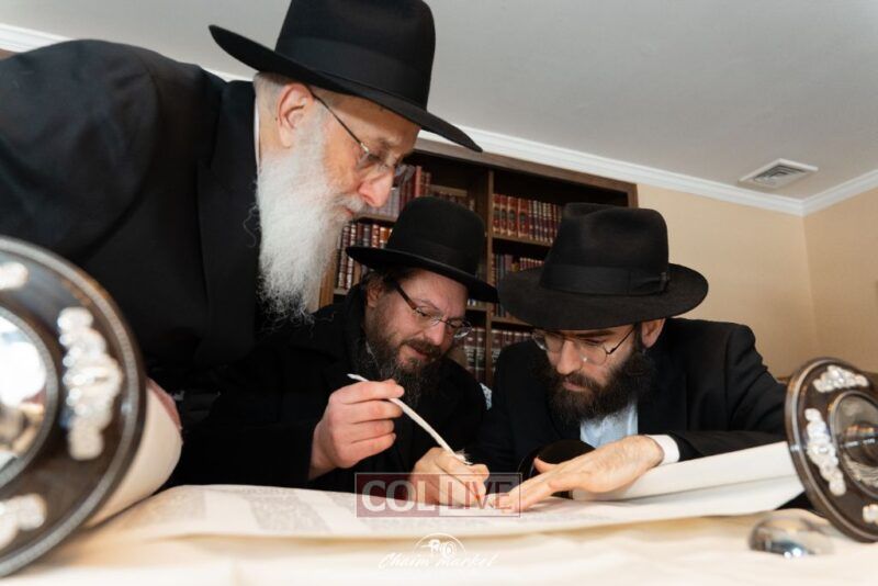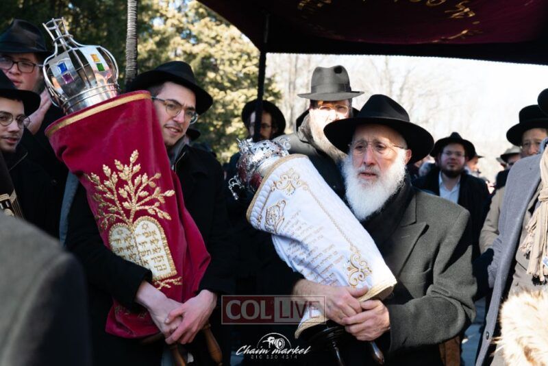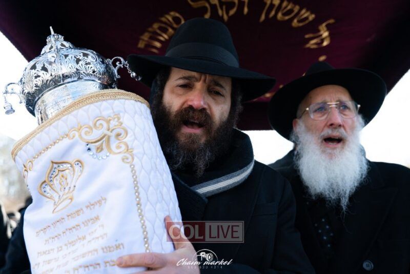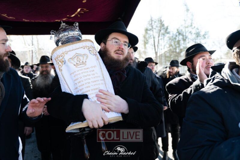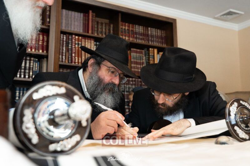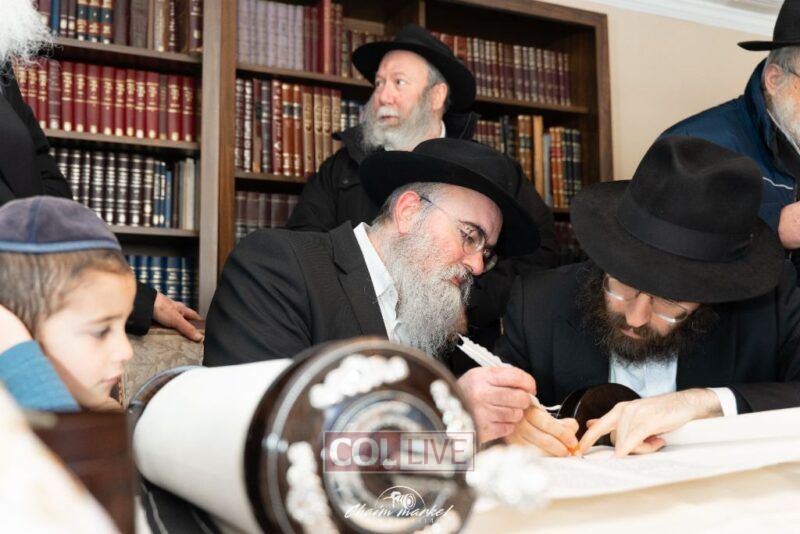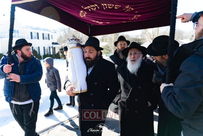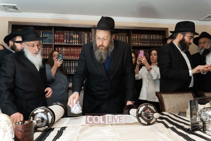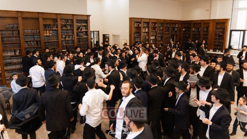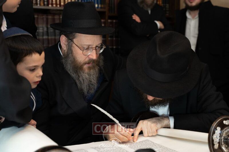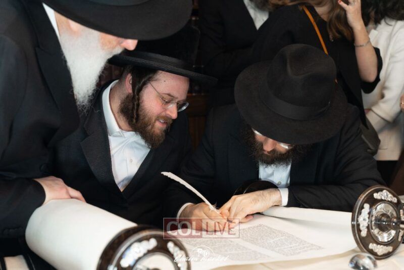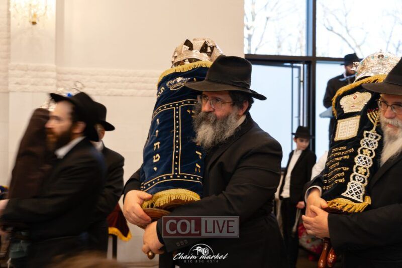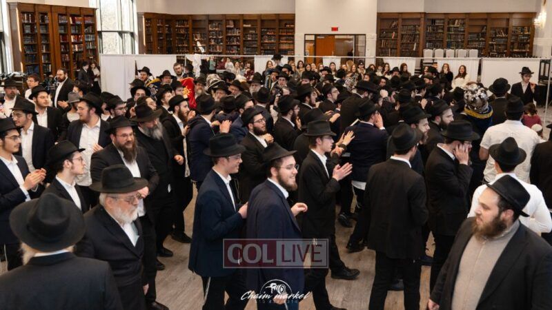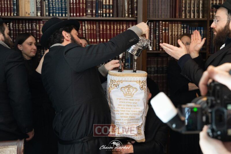The writing of the final letters began at the Spalter home, followed by a lively parade with music and dancing en route to the Rabbinical College of America, where joyous Hakafos and celebrations continued in the beautiful Tomchei Temimim zal.