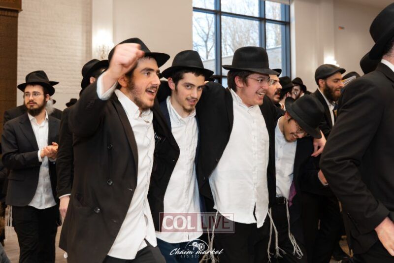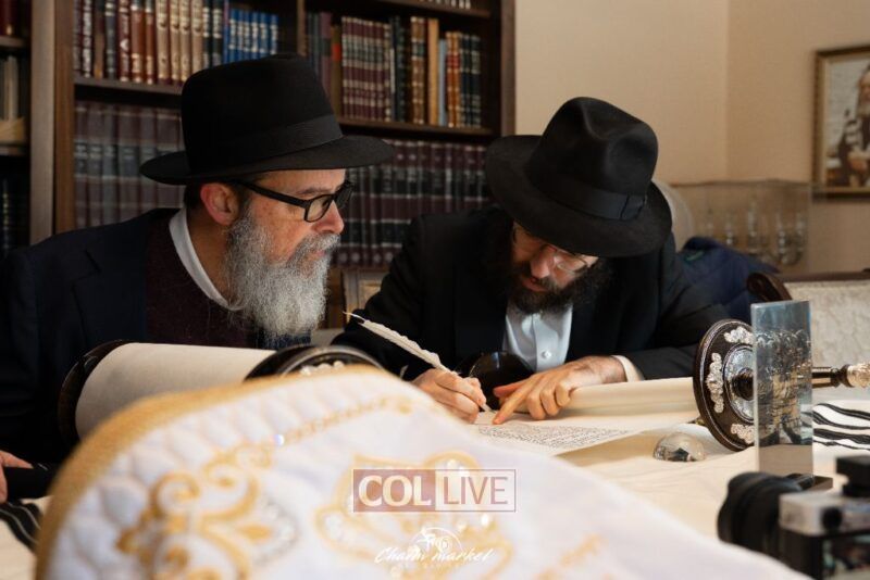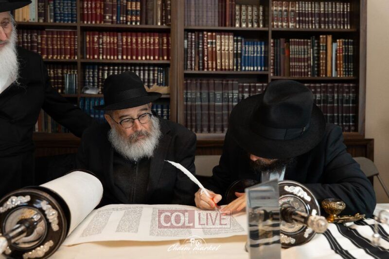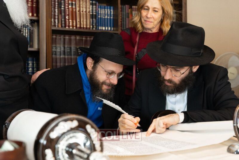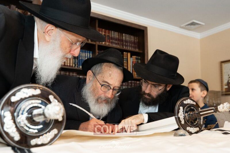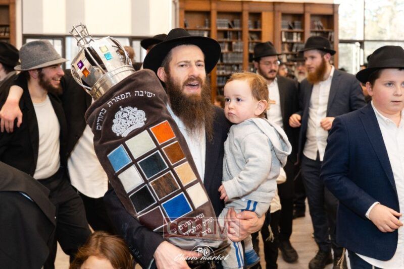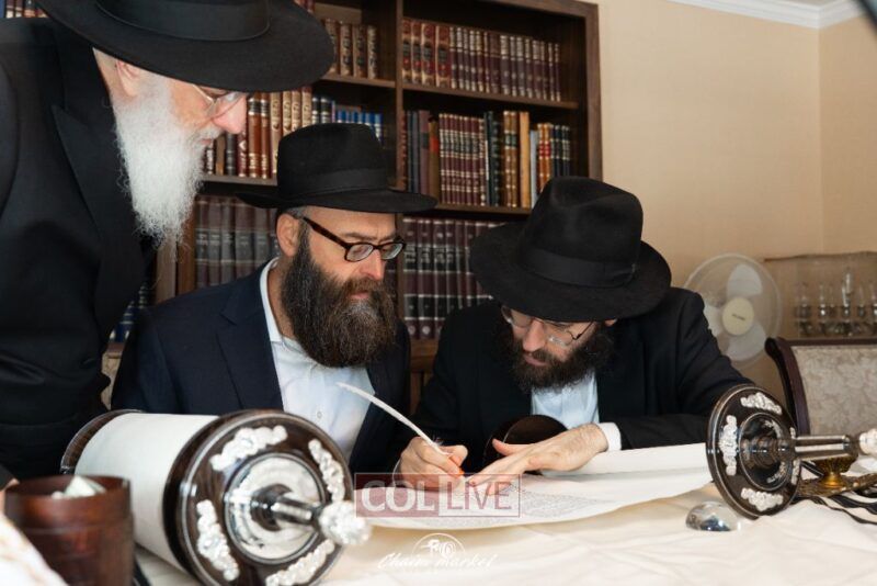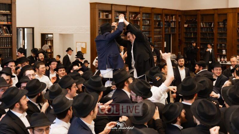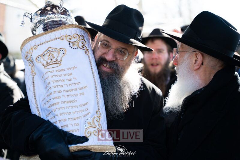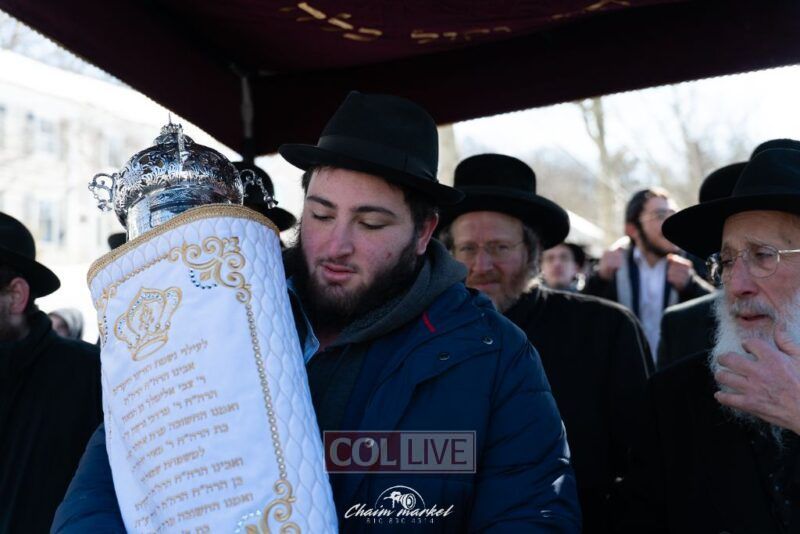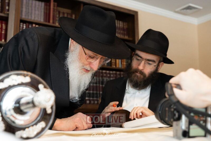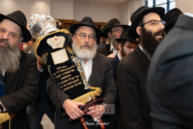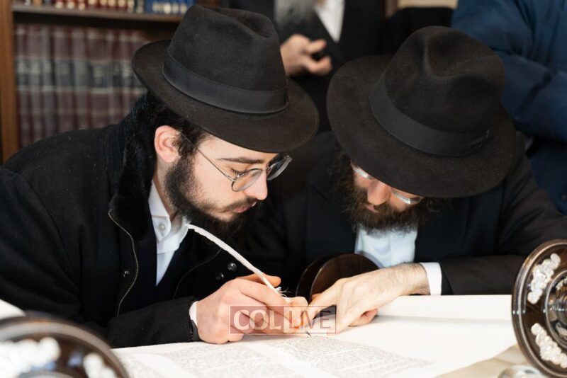 The writing of the final letters began at the Spalter home, followed by a lively parade with music and dancing en route to the Rabbinical College of America, where joyous Hakafos and celebrations continued in the beautiful Tomchei Temimim zal.