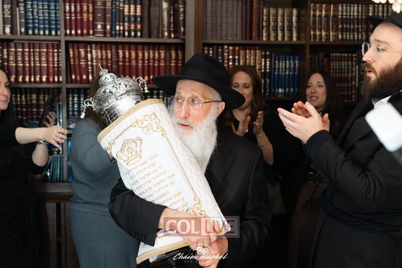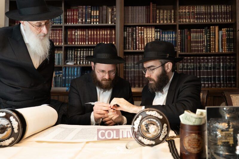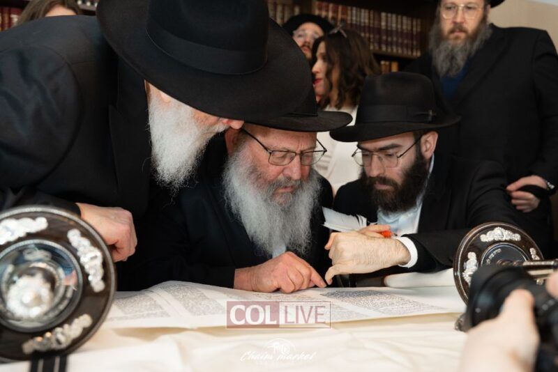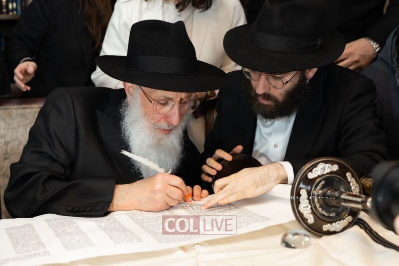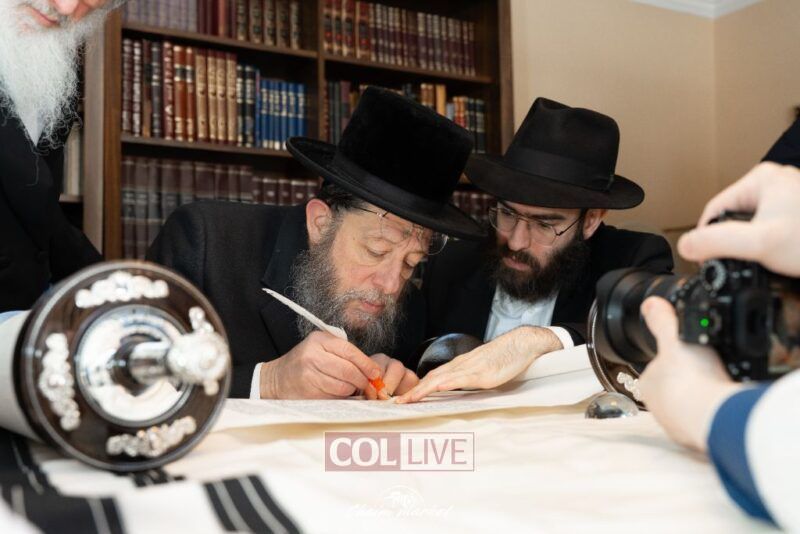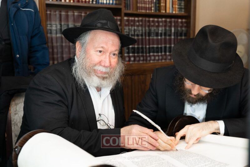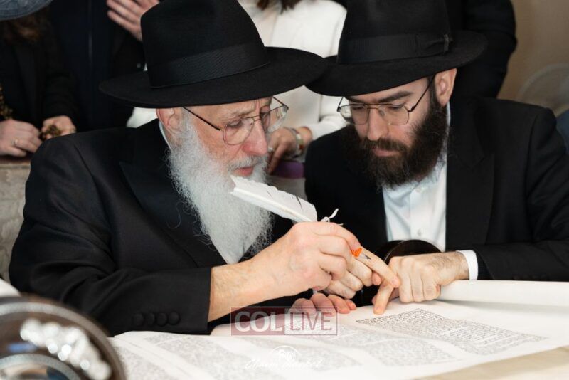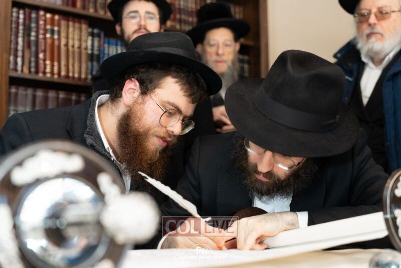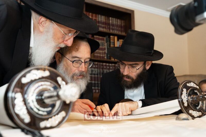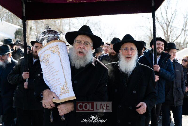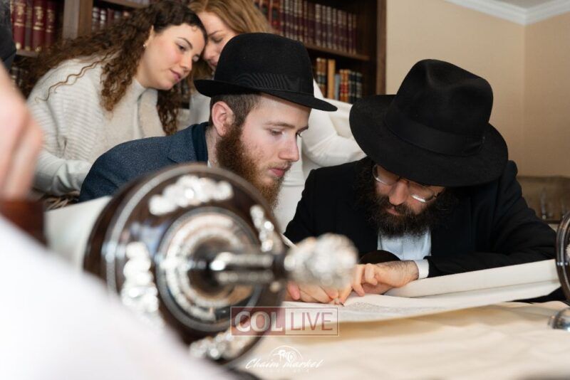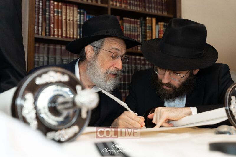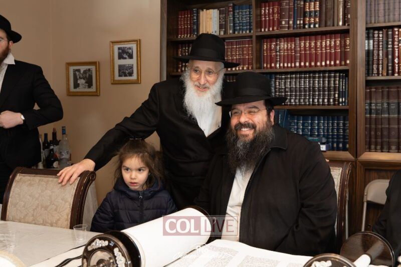 The writing of the final letters began at the Spalter home, followed by a lively parade with music and dancing en route to the Rabbinical College of America, where joyous Hakafos and celebrations continued in the beautiful Tomchei Temimim zal.