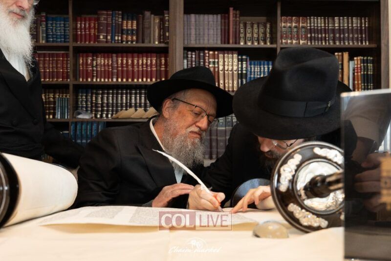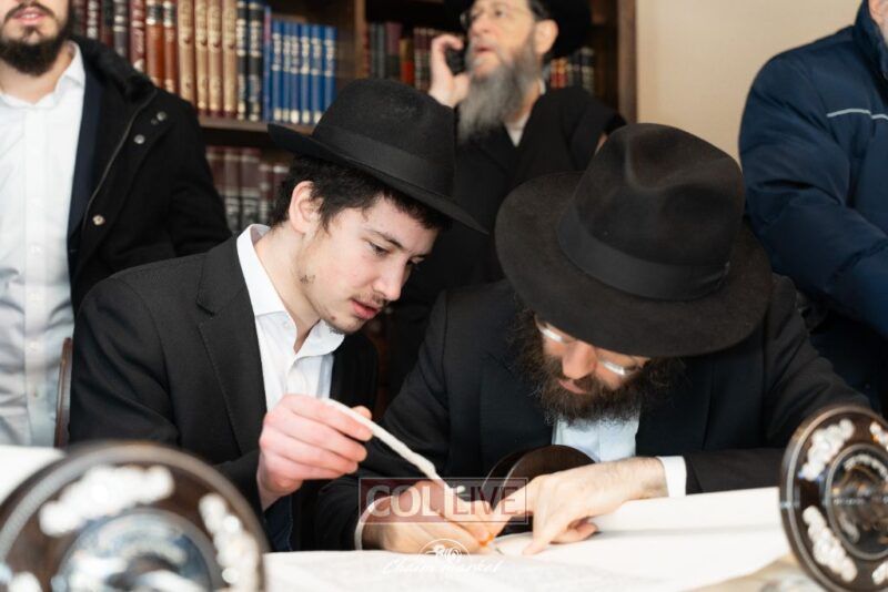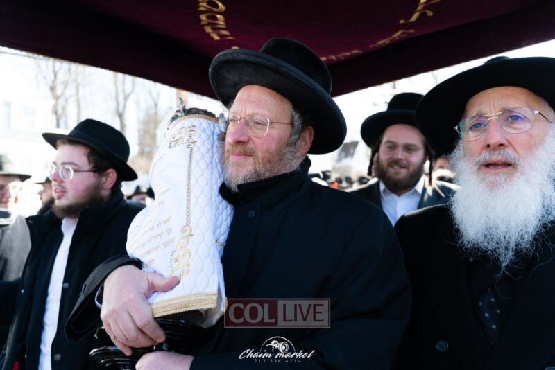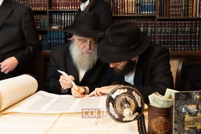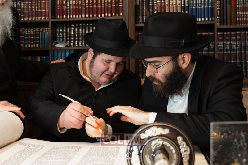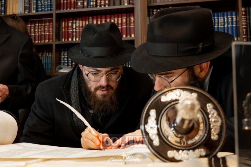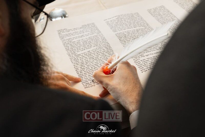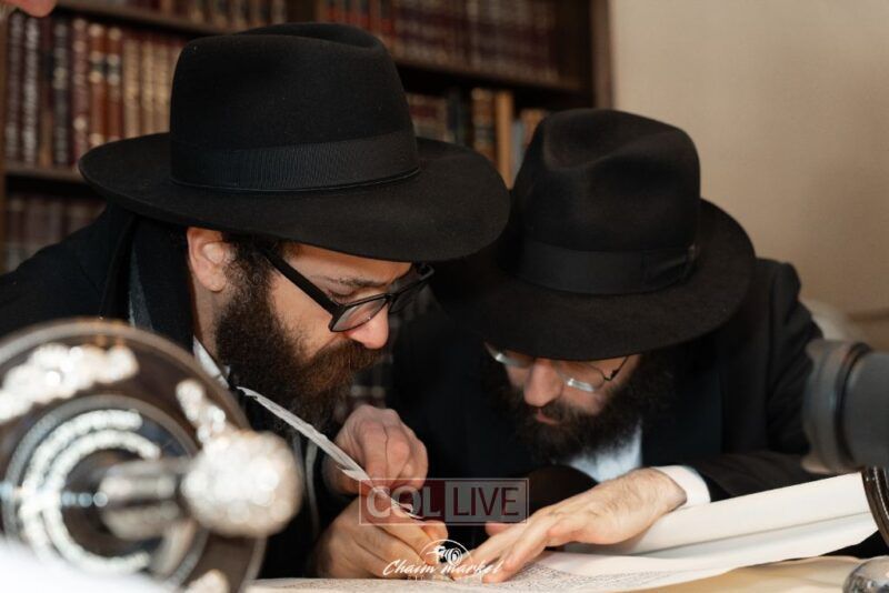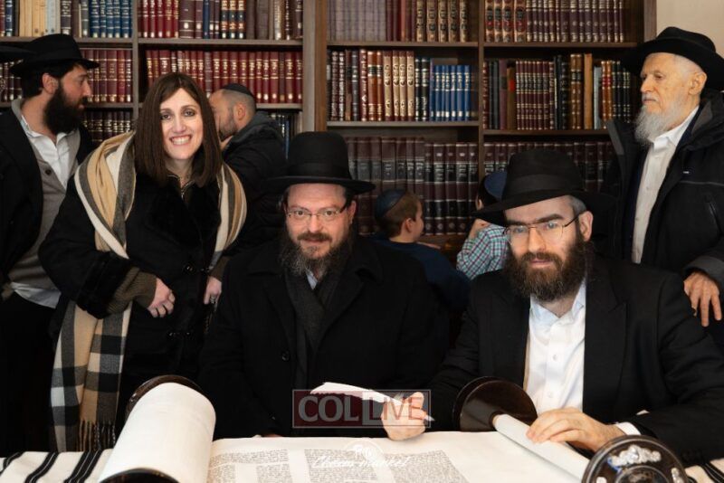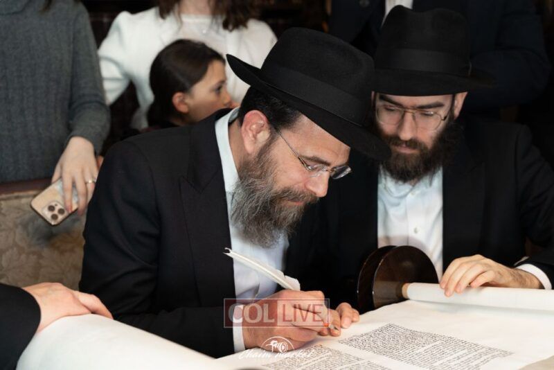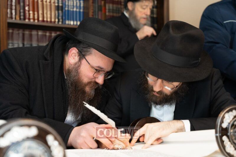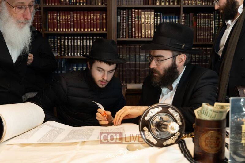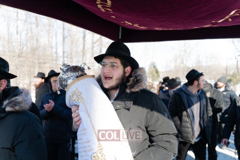 The writing of the final letters began at the Spalter home, followed by a lively parade with music and dancing en route to the Rabbinical College of America, where joyous Hakafos and celebrations continued in the beautiful Tomchei Temimim zal.