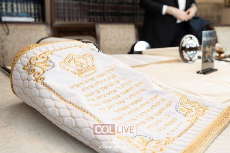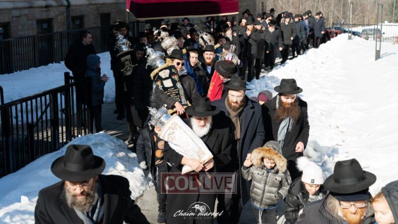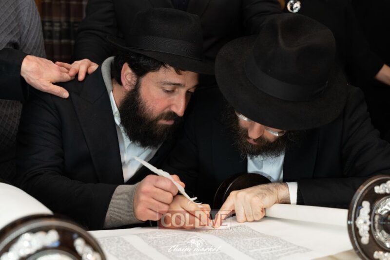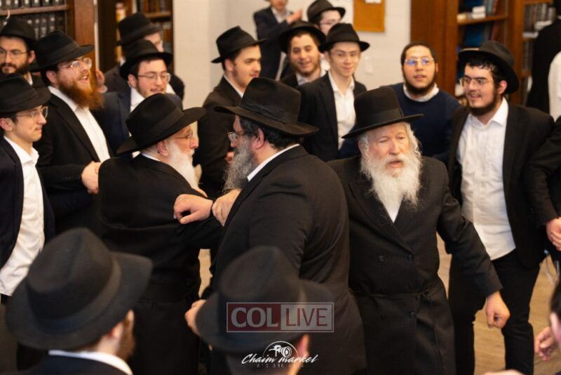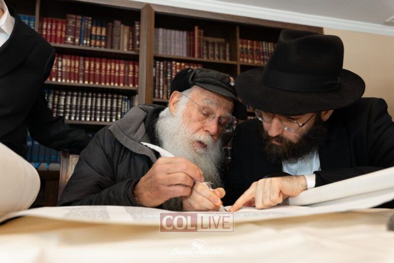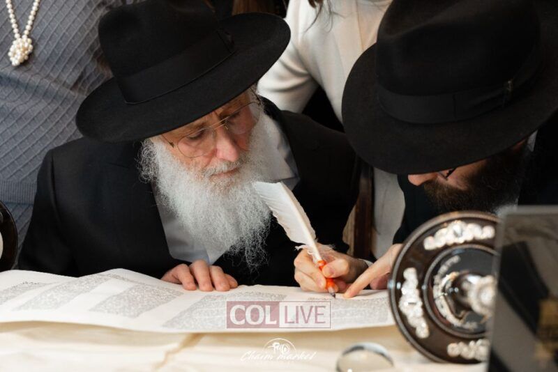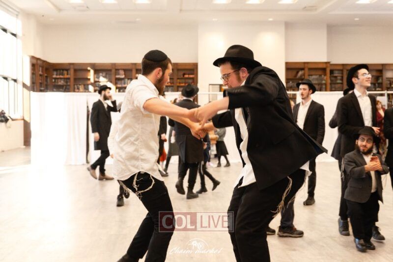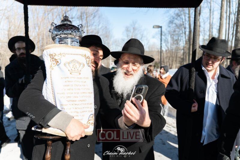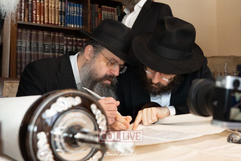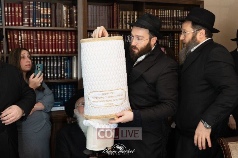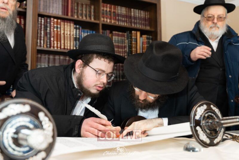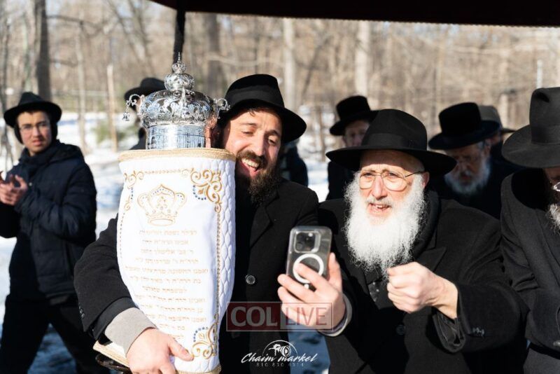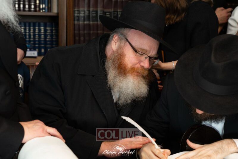 The writing of the final letters began at the Spalter home, followed by a lively parade with music and dancing en route to the Rabbinical College of America, where joyous Hakafos and celebrations continued in the beautiful Tomchei Temimim zal.