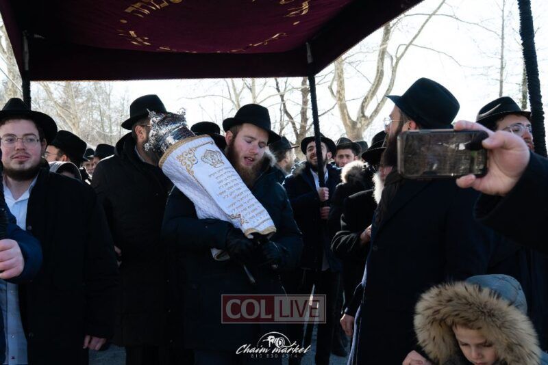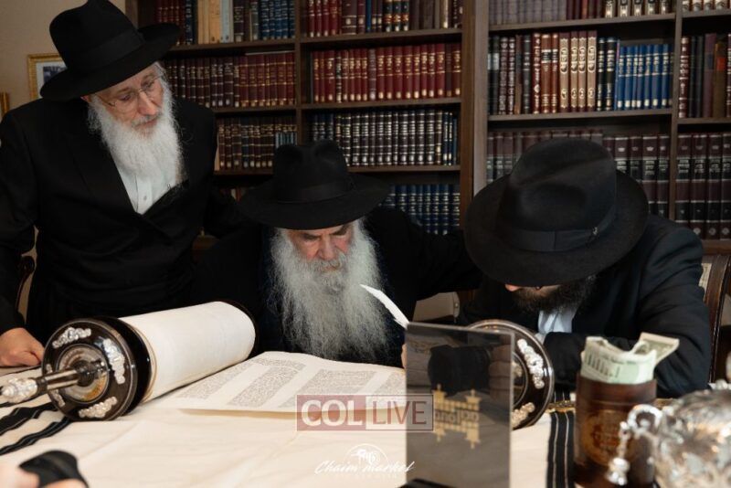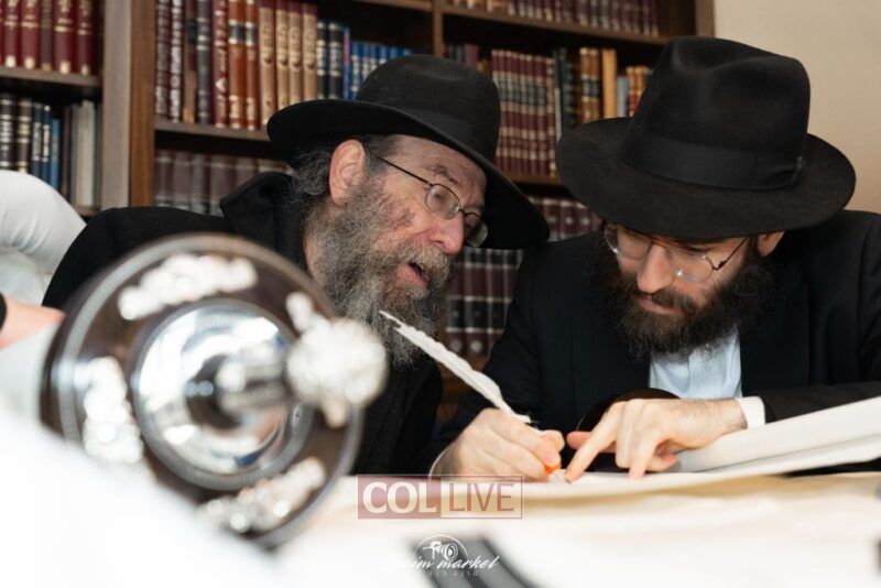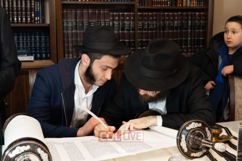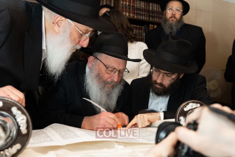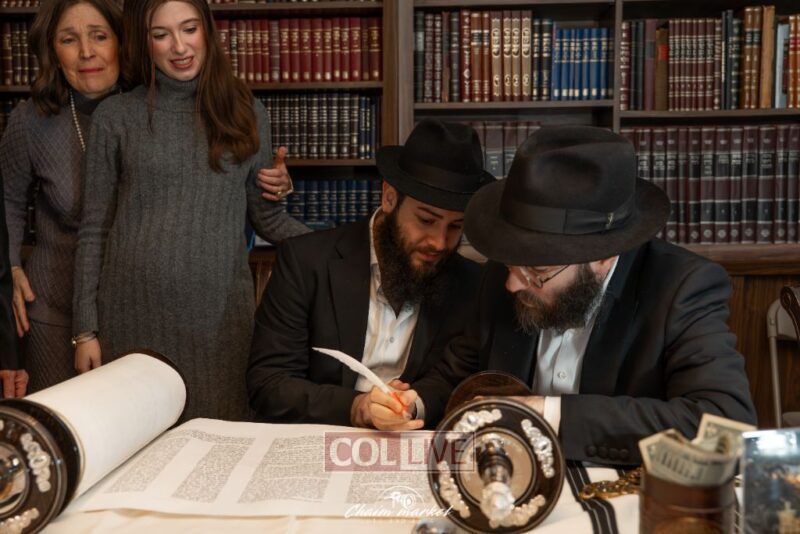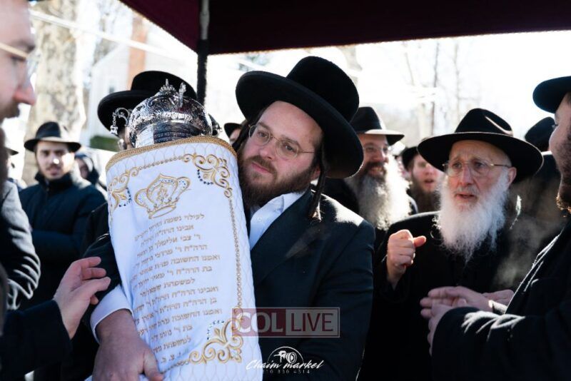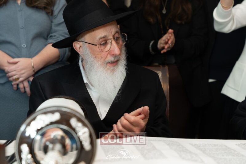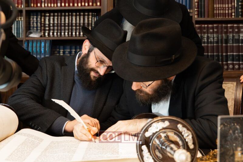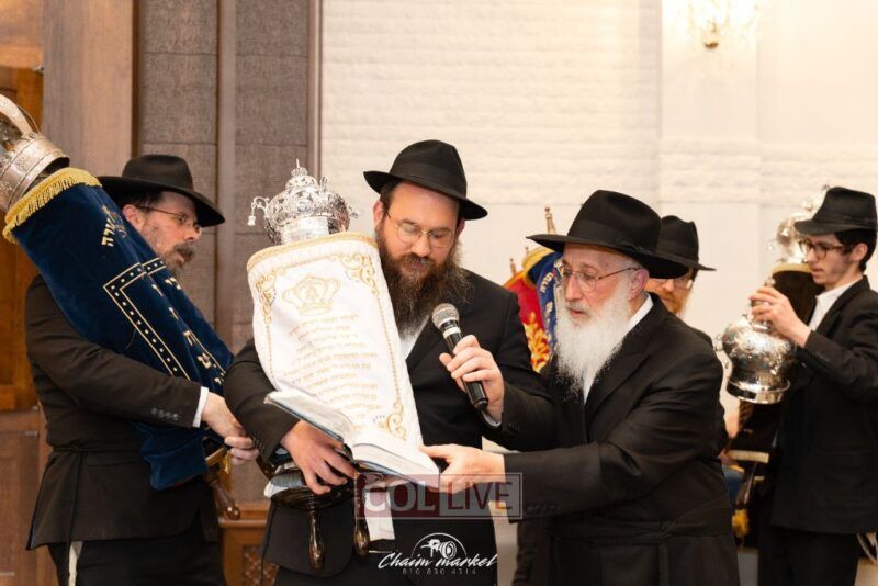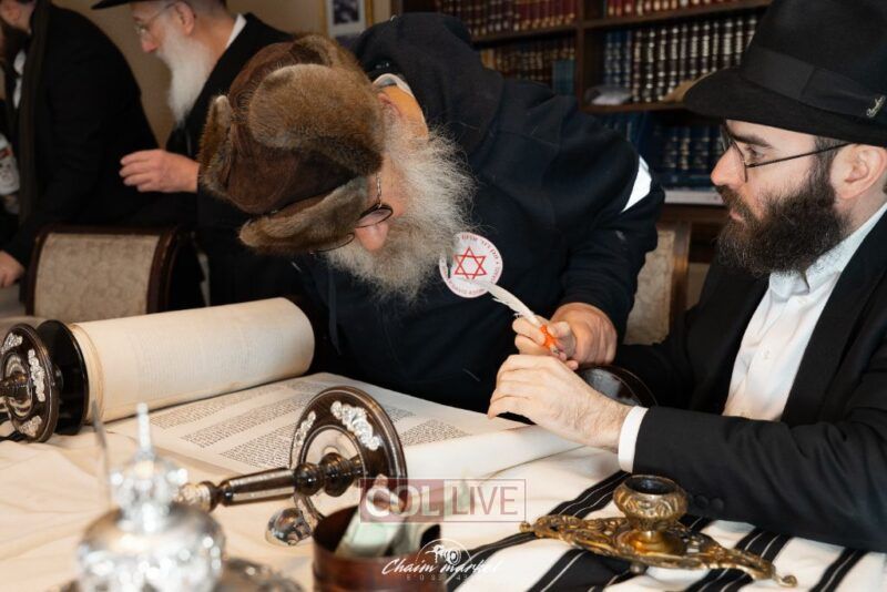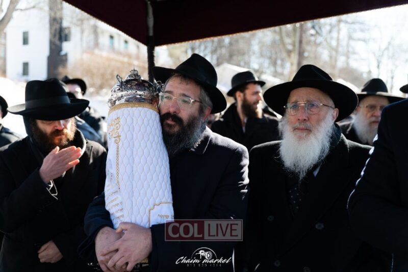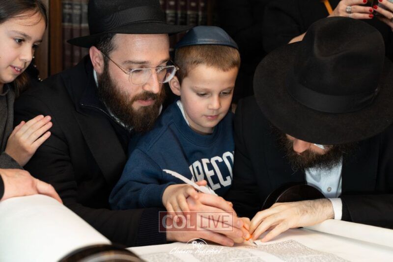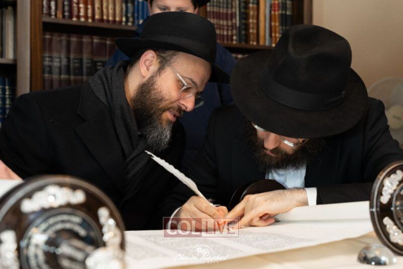 The writing of the final letters began at the Spalter home, followed by a lively parade with music and dancing en route to the Rabbinical College of America, where joyous Hakafos and celebrations continued in the beautiful Tomchei Temimim zal.