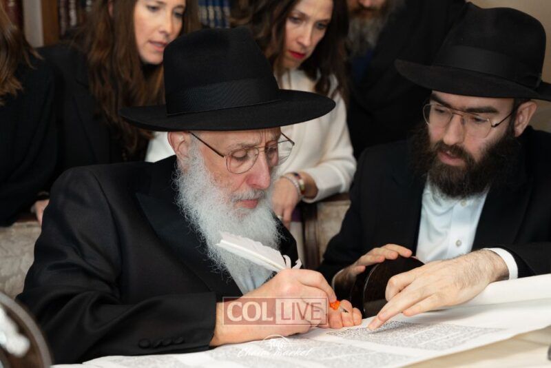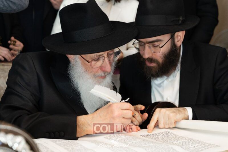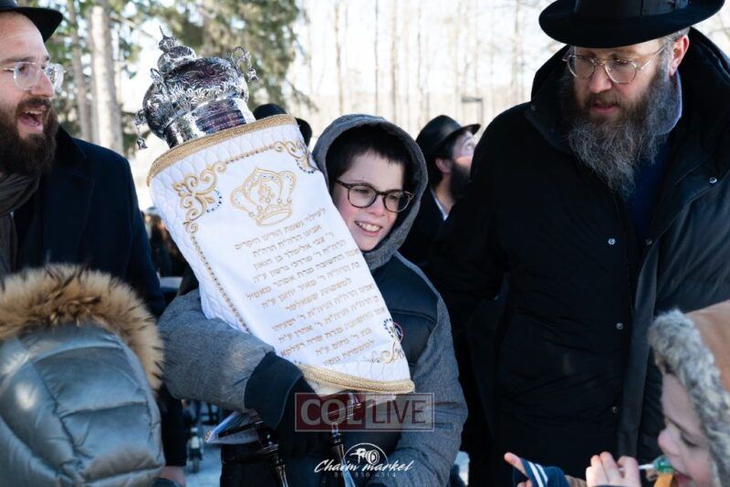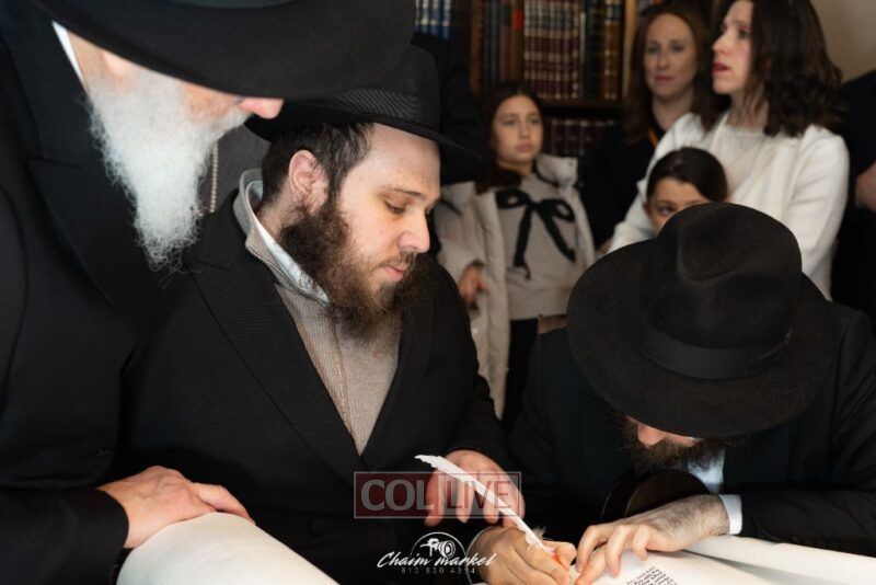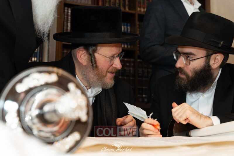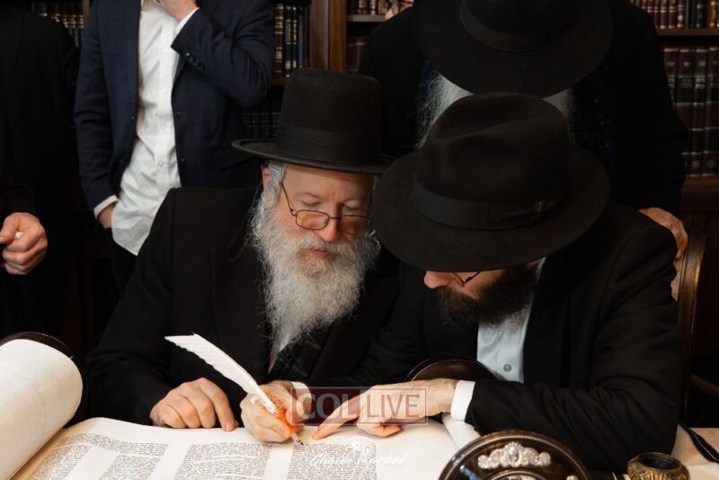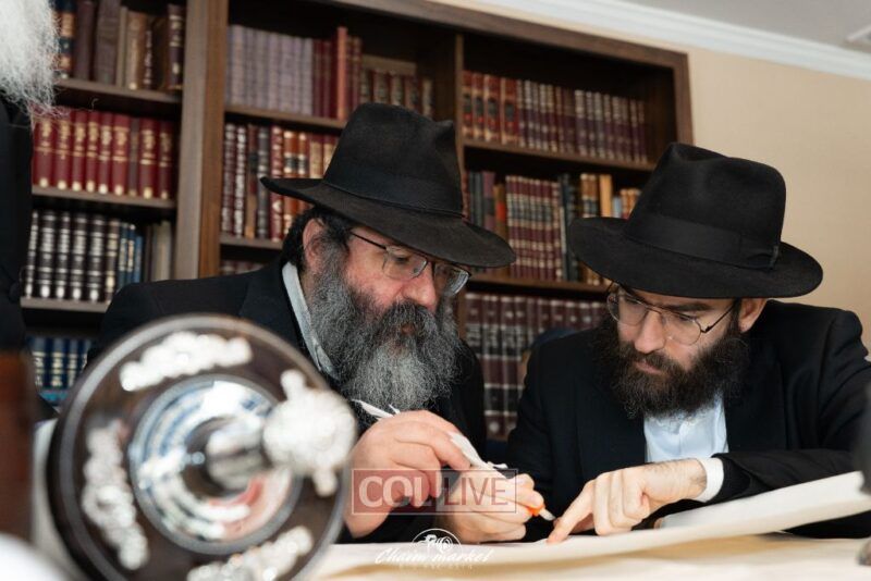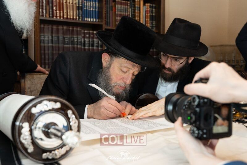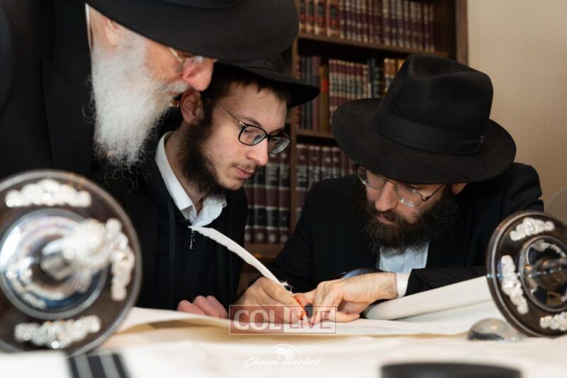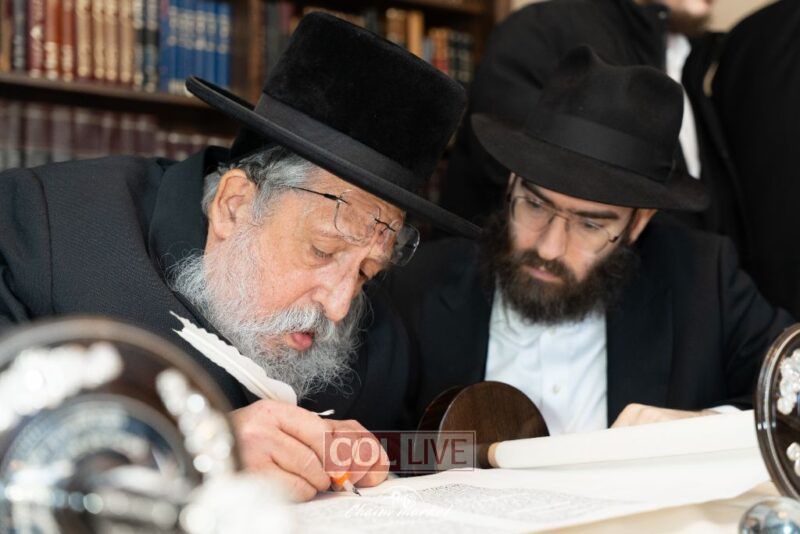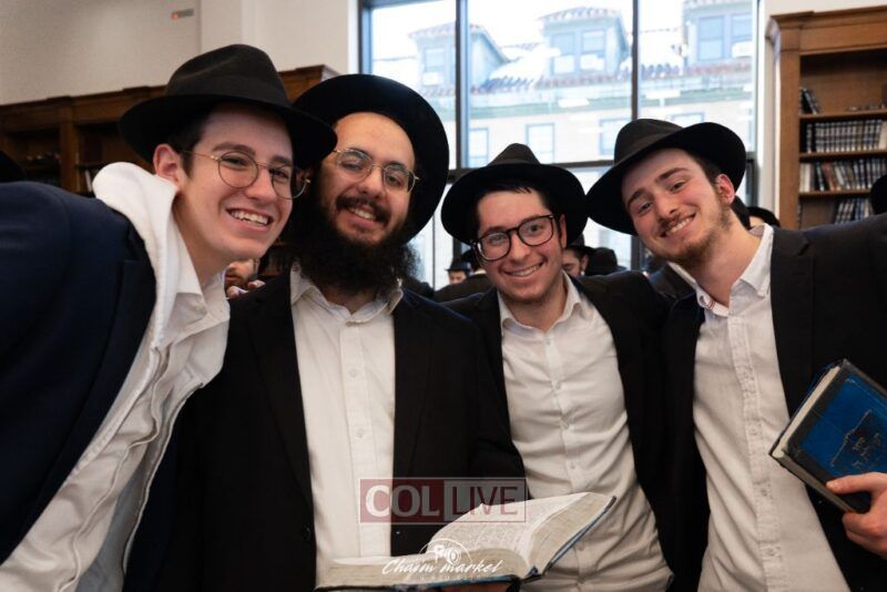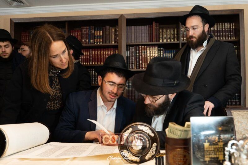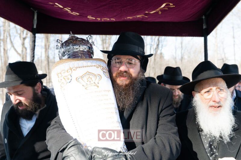 The writing of the final letters began at the Spalter home, followed by a lively parade with music and dancing en route to the Rabbinical College of America, where joyous Hakafos and celebrations continued in the beautiful Tomchei Temimim zal.
