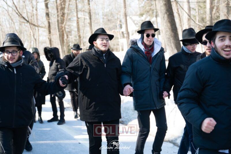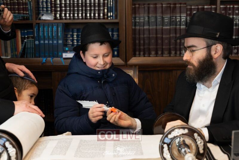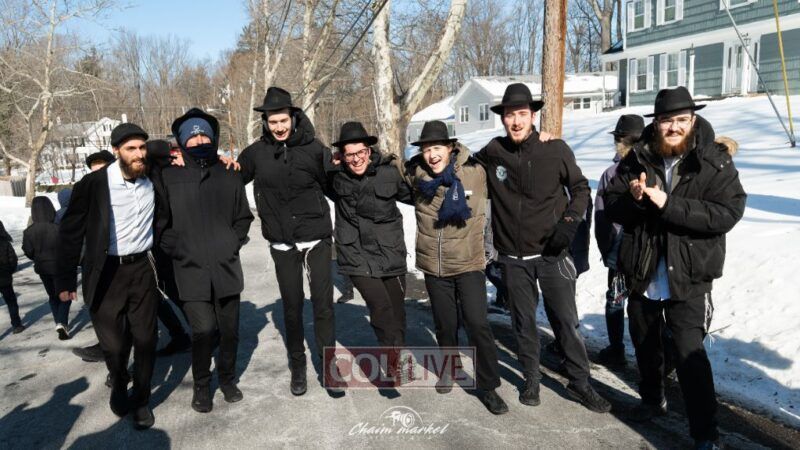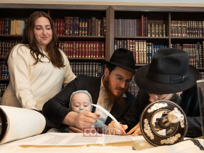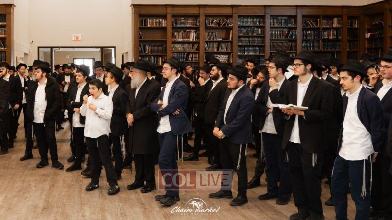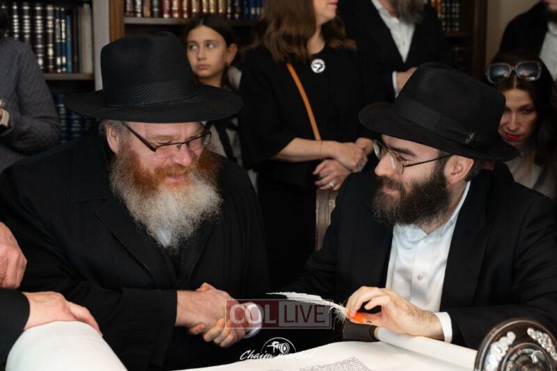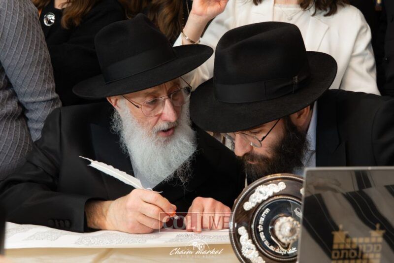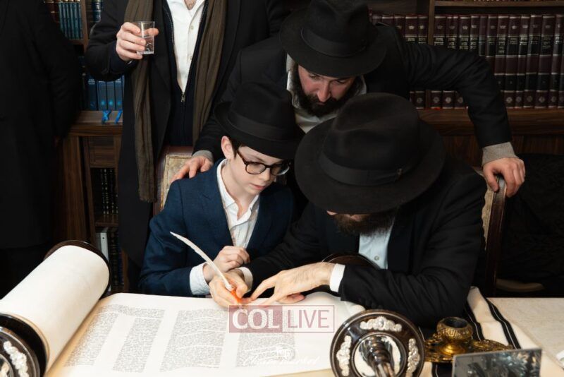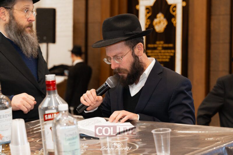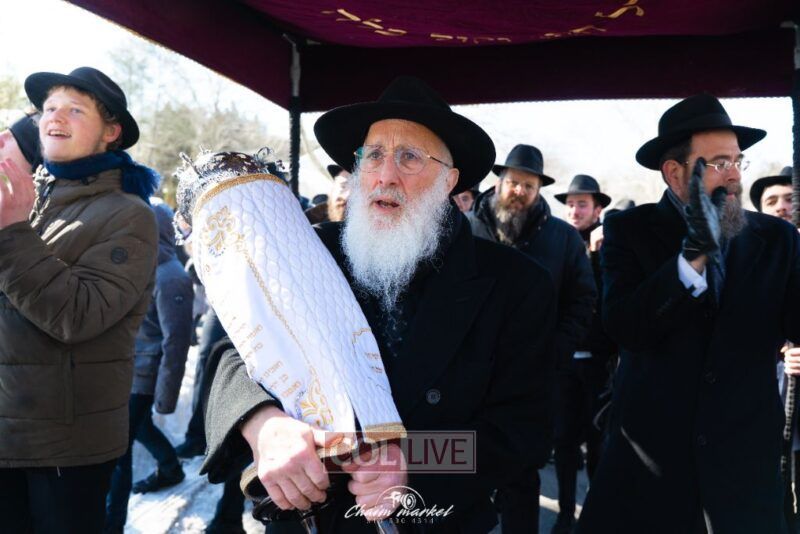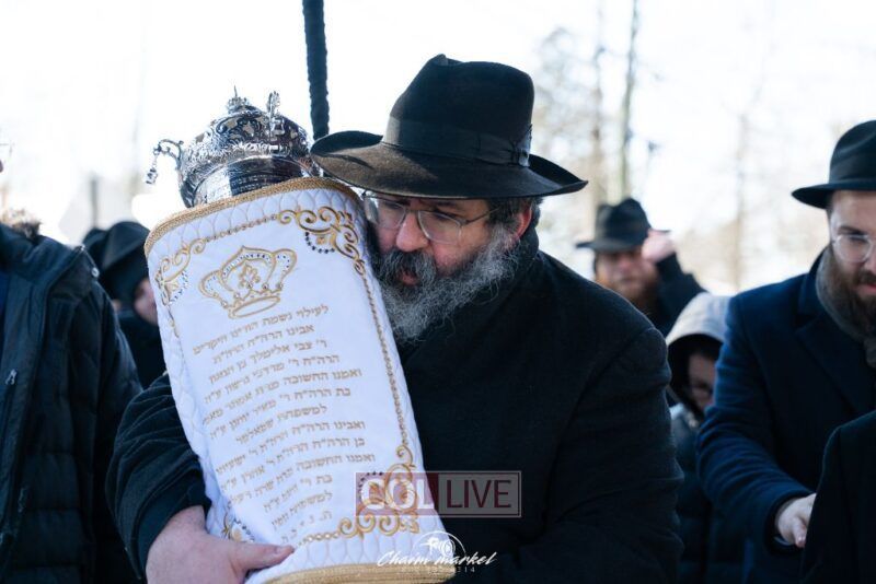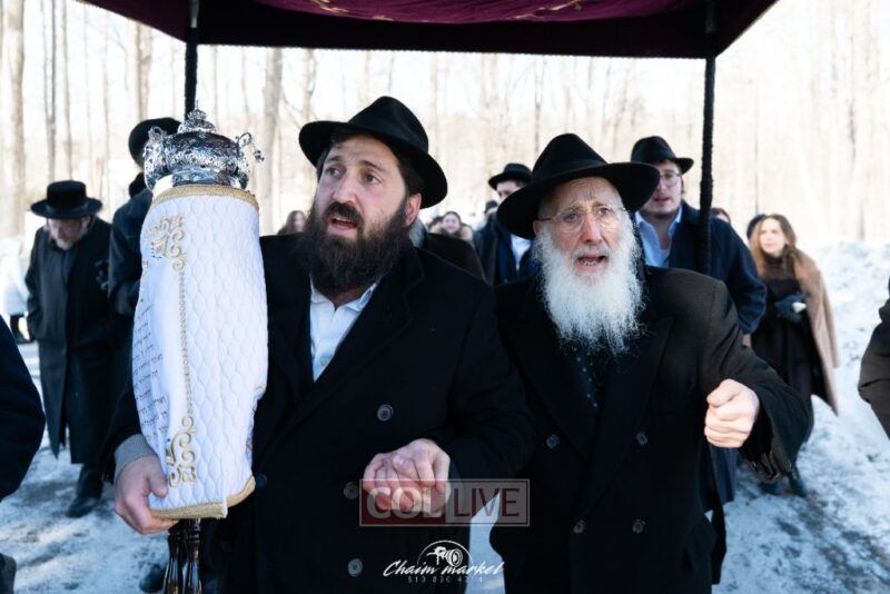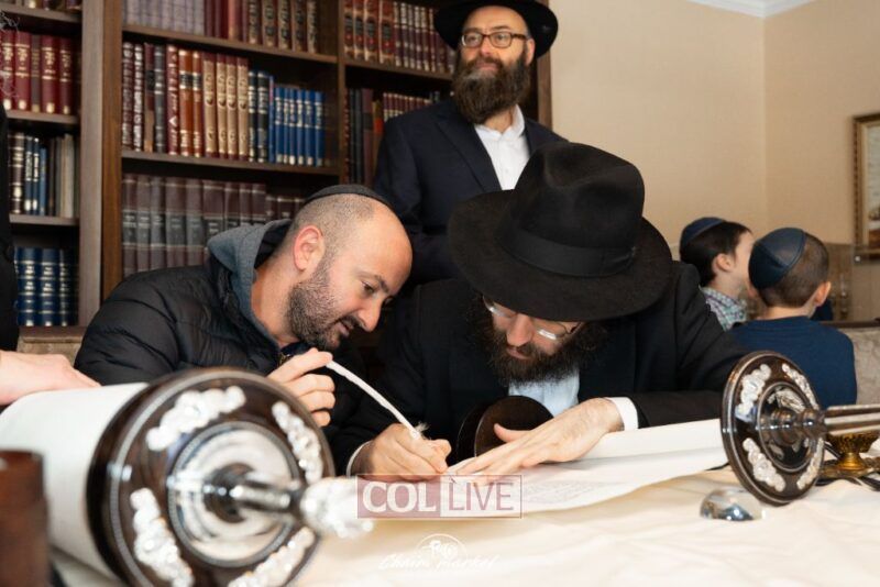 The writing of the final letters began at the Spalter home, followed by a lively parade with music and dancing en route to the Rabbinical College of America, where joyous Hakafos and celebrations continued in the beautiful Tomchei Temimim zal.