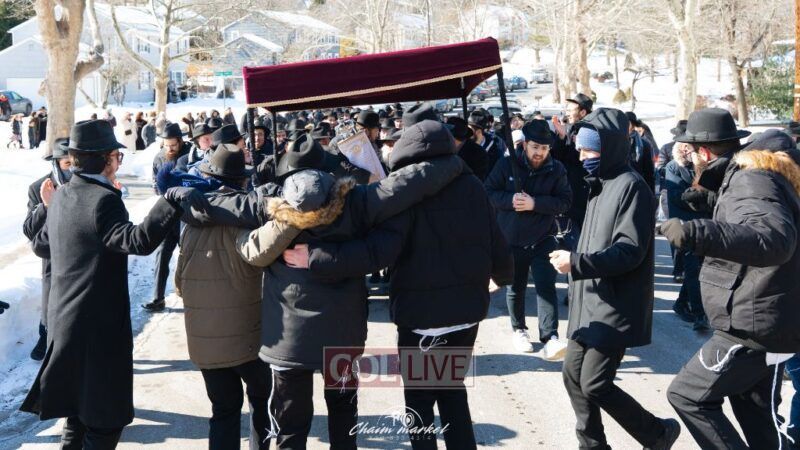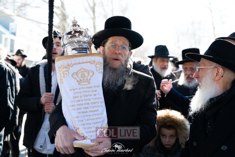 Last Sunday, the Morristown community celebrated the welcoming of a new Sefer Torah, dedicated by Rabbi and Mrs. Shalom Spalter, in honor of their parents. The event drew relatives, members of the community, bochurim of Tomchei Temimim and Tiferes Bachurim.