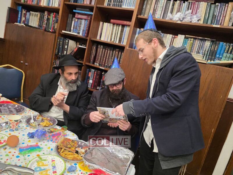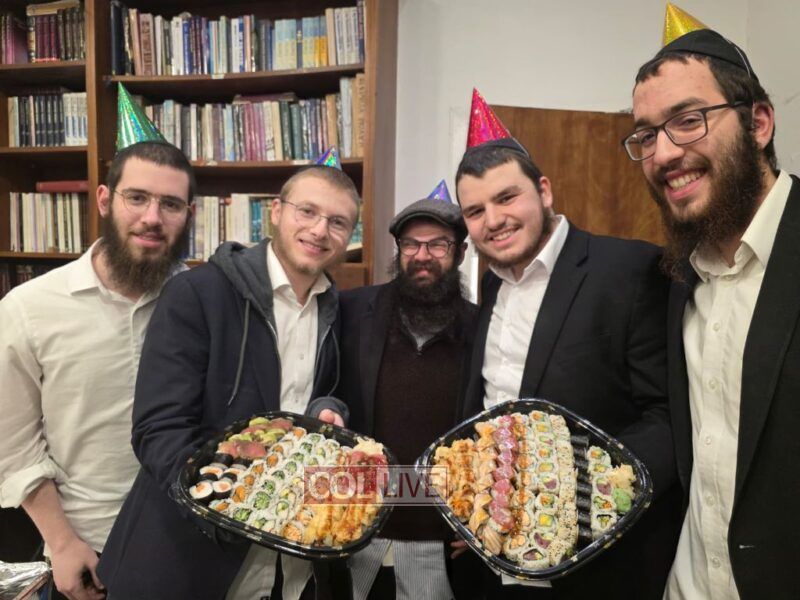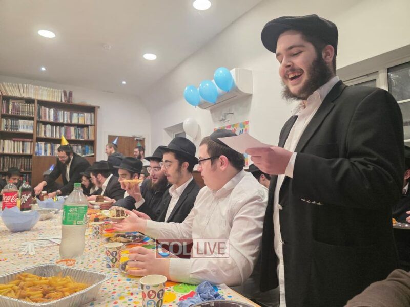 Bochurim and Hanholah gathered to share in the food, laughter, and song, making Boruch Shneur feel truly celebrated.