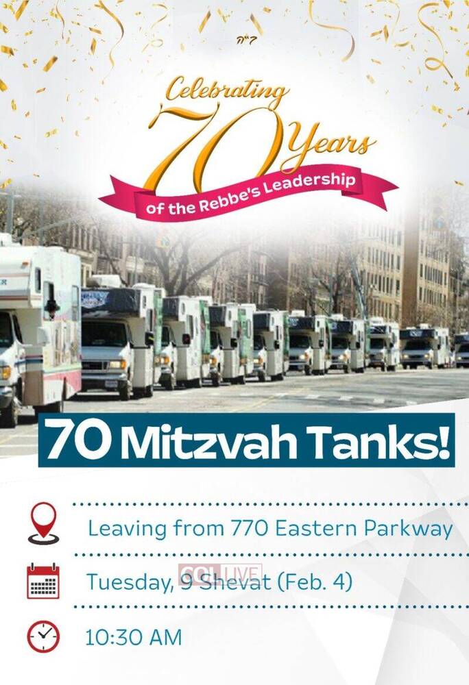 As Chassidim and world Jewry celebrate 70 years since the Rebbe assumed the role of leadership this Yud Shevat, 70 Mitzvah-tanks will parade from 770 across the bridge and into Manhattan, bringing this major celebration to the streets of New York.