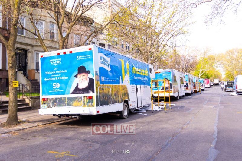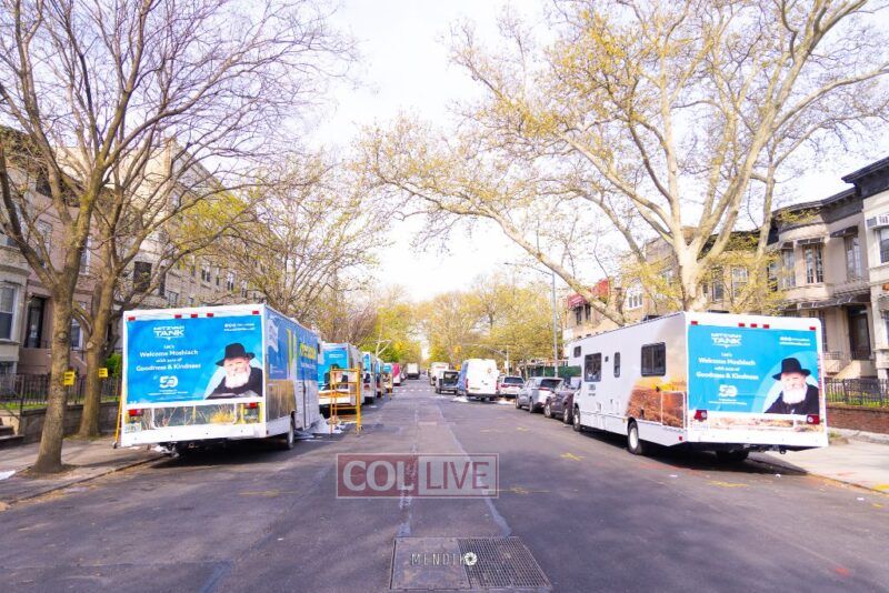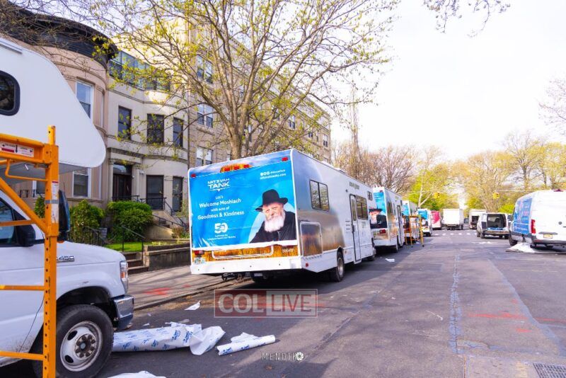 President Street between Kingston and Brooklyn Avenues are closed off as well, as the Mitzvah Tanks, which will head out to celebrate the Rebbe’s birthday Yud Alef Nissan, are prepared.