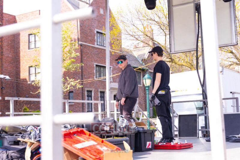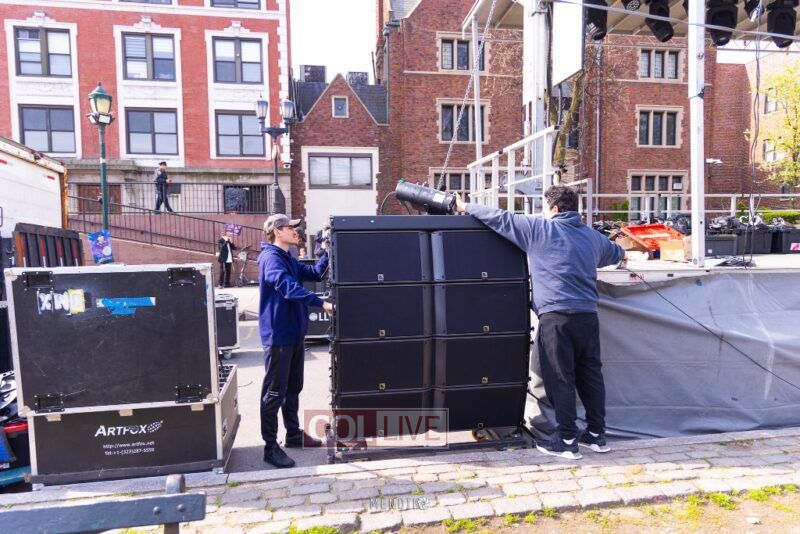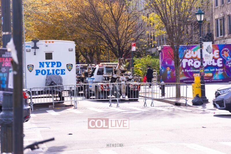 The Eastern Parkway service roads are closed off between Brooklyn and Albany Avenues as crews set up for the grand Siyum marking the 40th year of learning the daily Rambam, to take place in front of 770 Eastern Parkway.