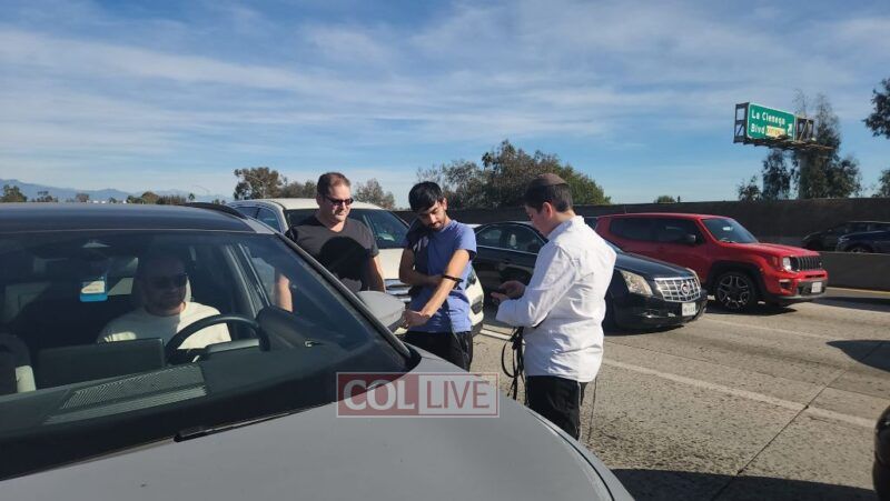 The Newmans were soon putting on Tefillin on other drivers who voluntarily stepped out of their cars and waved over the bochurim. “People took out their phones and were snapping away, proud to share these moments with their families and friends,” COLlive.com was told.