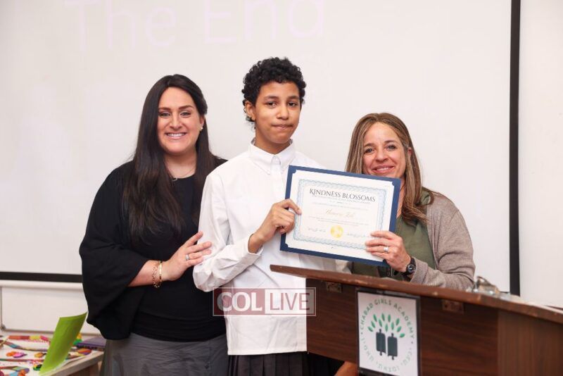 The ceremony also included the Yocheved Gourarie Kindness Award, presented by Mrs. Dini Gourarie. Chosen by their classmates, Yehudis Nadler, Shterna Sara Werde, and Shneuri Zik were recognized for their exceptional kindness, with each student receiving a $100 cash prize. Students also selected Miss Rivka Gribov as the teacher who truly embodied kindness and empathy to every student she taught, awarding her a $500 cash prize in appreciation.