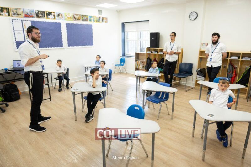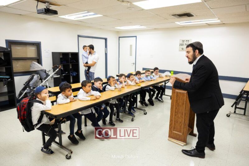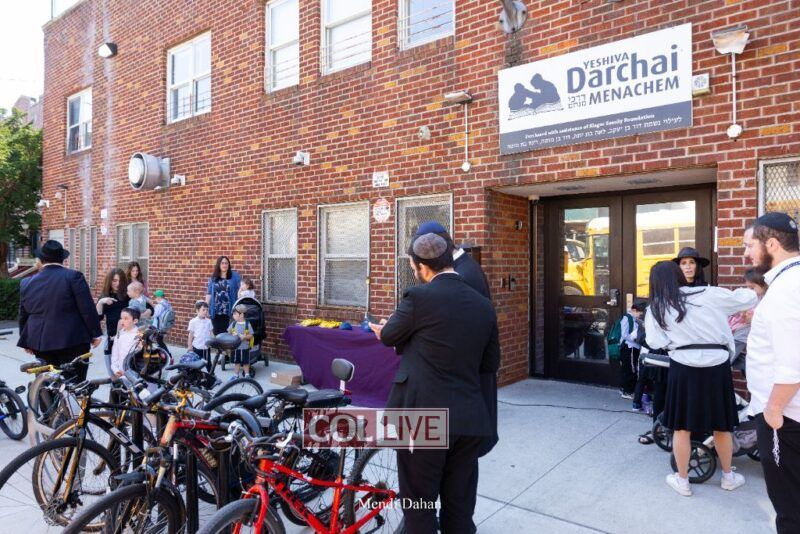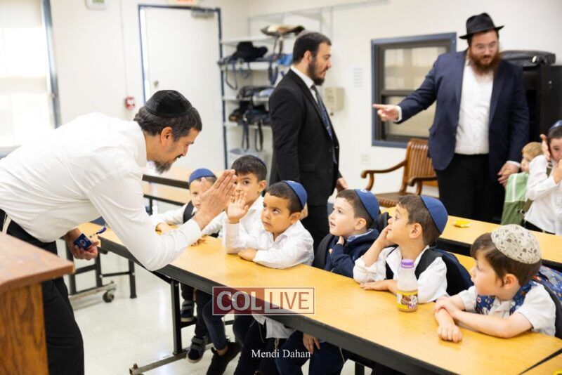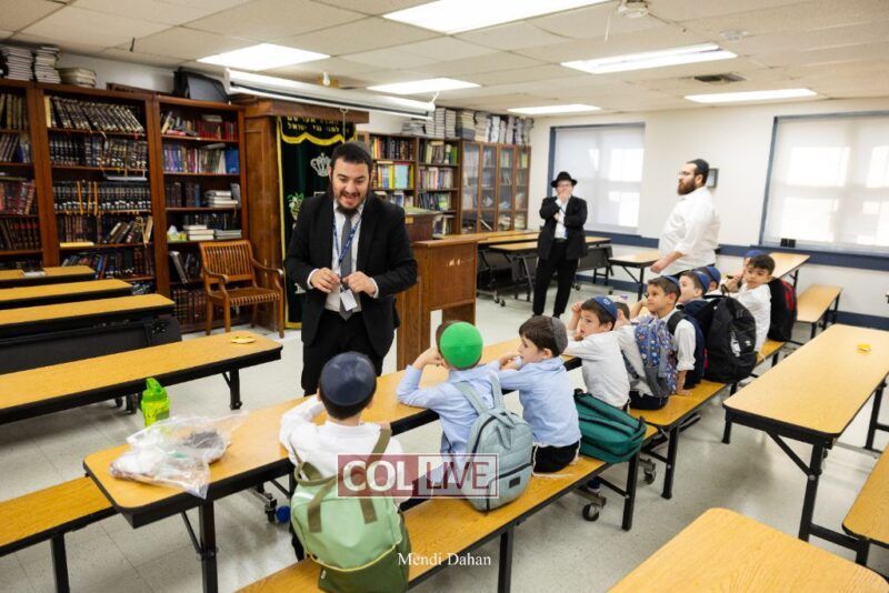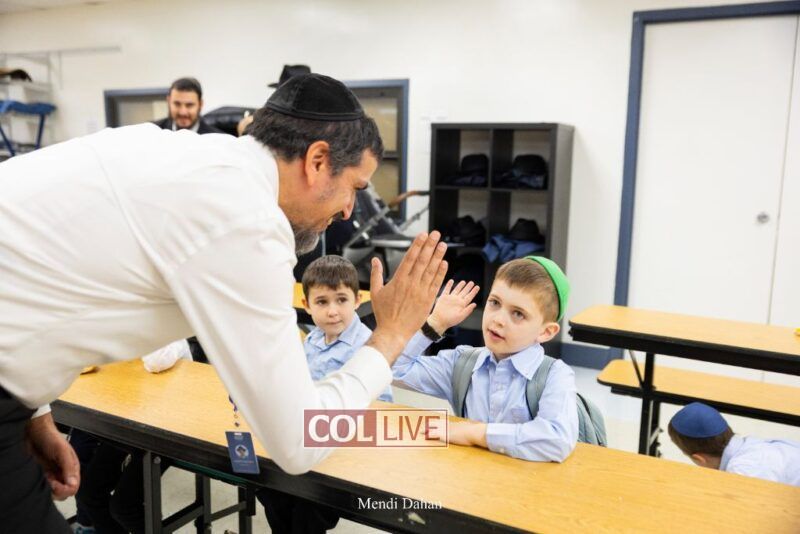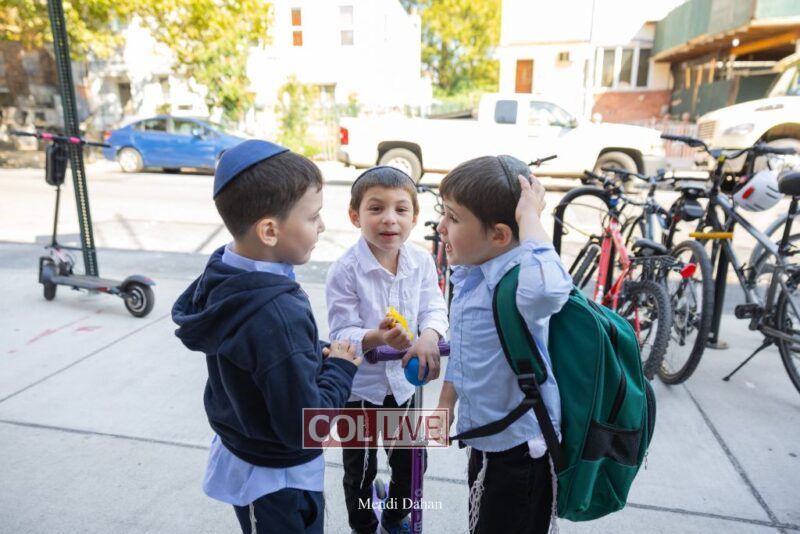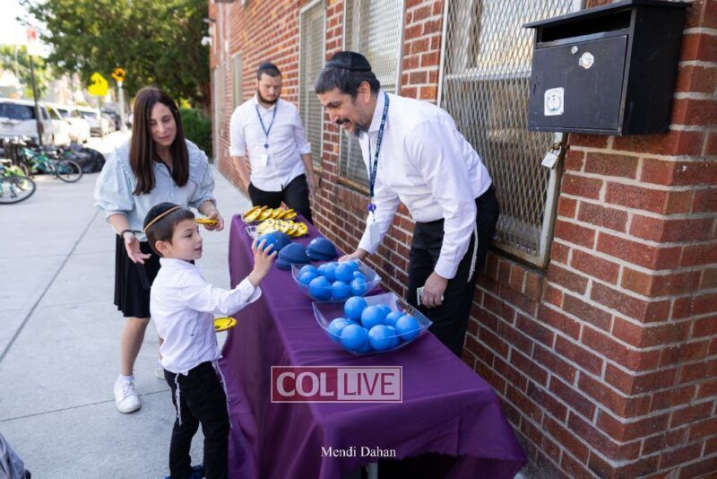 Happy smiles were seen as students were welcomed on the first day of school at Darchai Menachem Yeshiva in Crown Heights on Wednesday. Photos