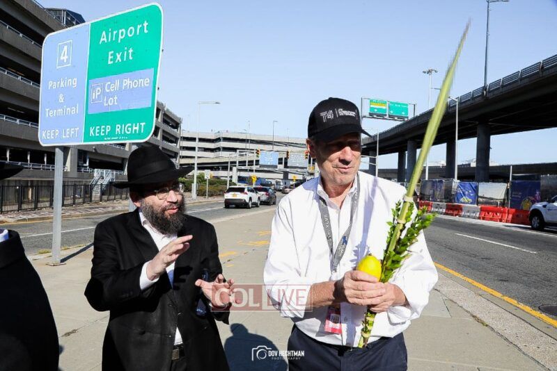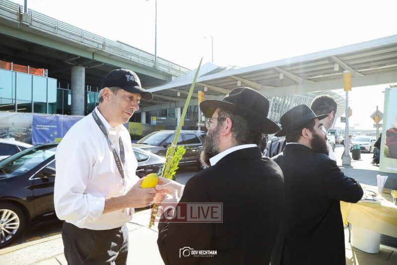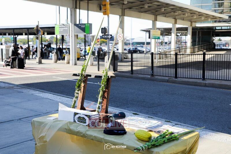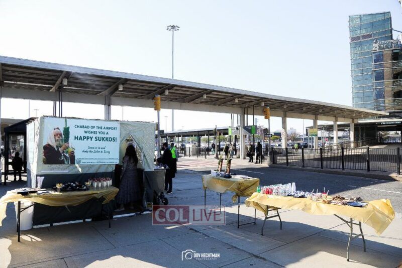 For the 6th year, passengers at JFK Airport in New York enjoyed the use of a Sukkah on Chol Hamoed Sukkos on the way to their flights, organized by Chabad of the Airport.