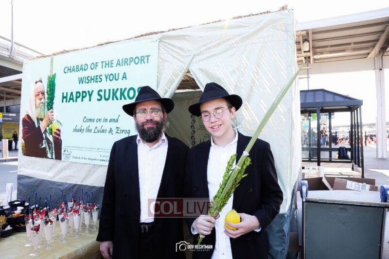 Chabad of the Airport also offered many fellow Jews the opportunity to make a blessing on the Lulav and Esrog. They also welcomed the EL Al personnel into the Sukkah to perform the Mitzvos of Sukkos.