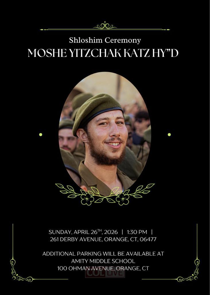 An event marking the Shloshim – 30 days since the passing of Moshe Yitzchak Katz HY”D will take place on Sunday, April 26, 2026, at 1:30 PM in Orange, Connecticut.