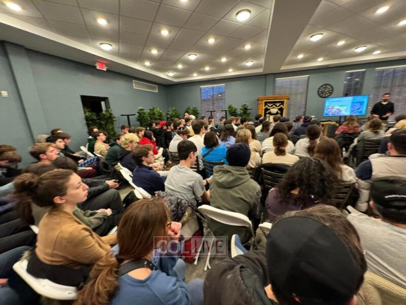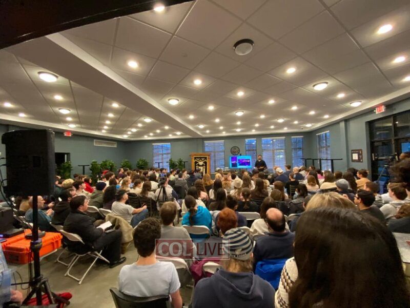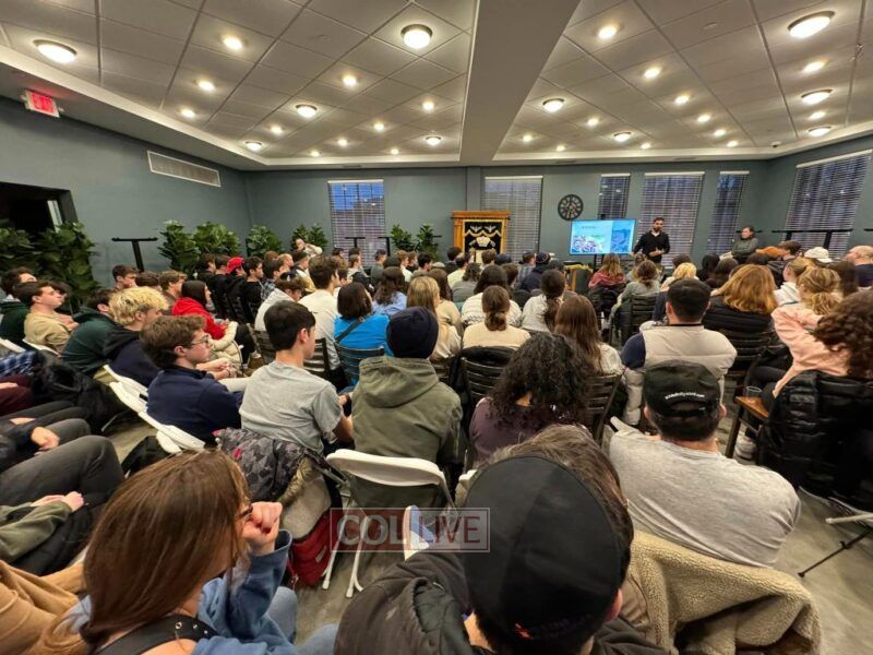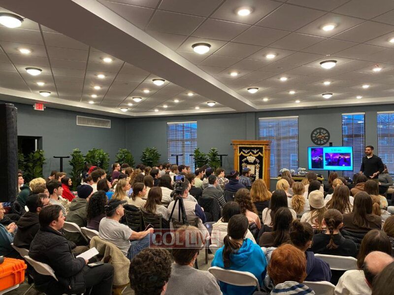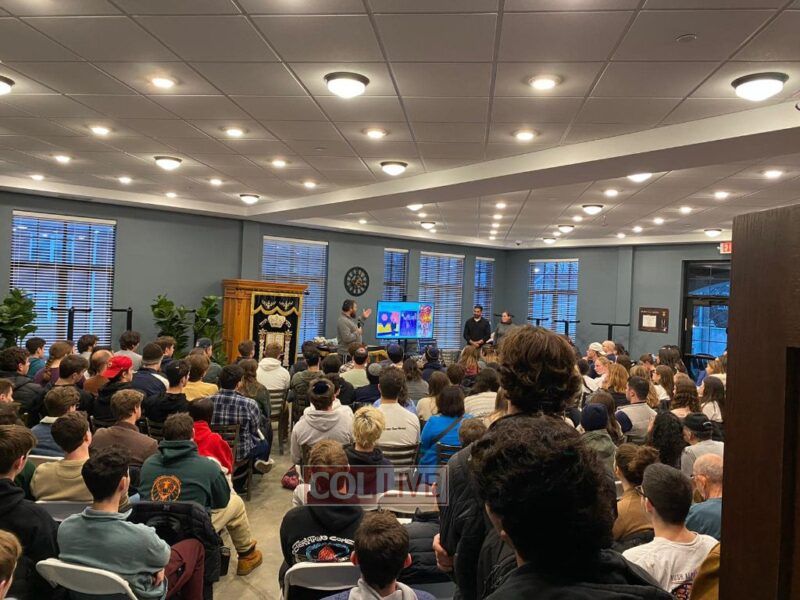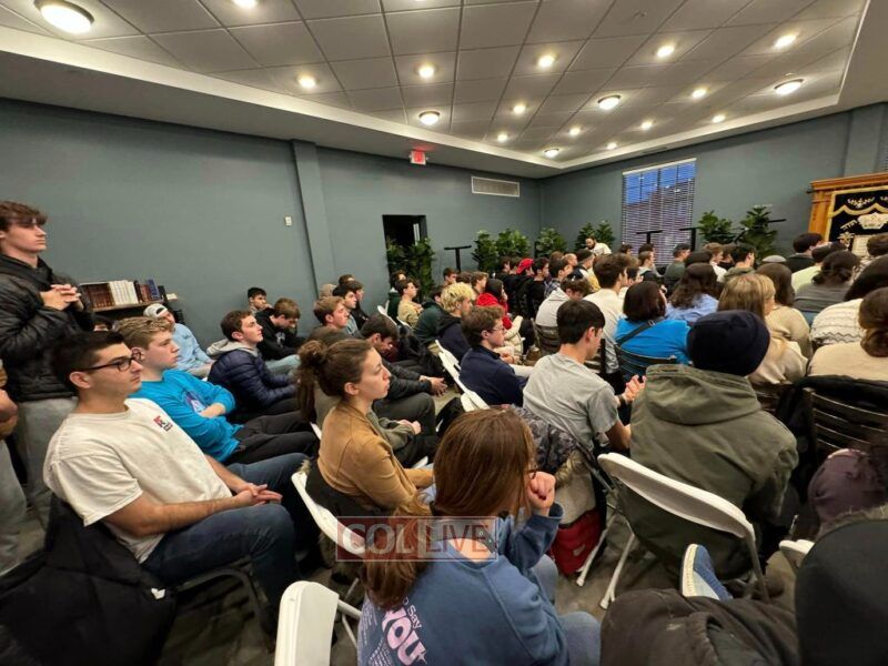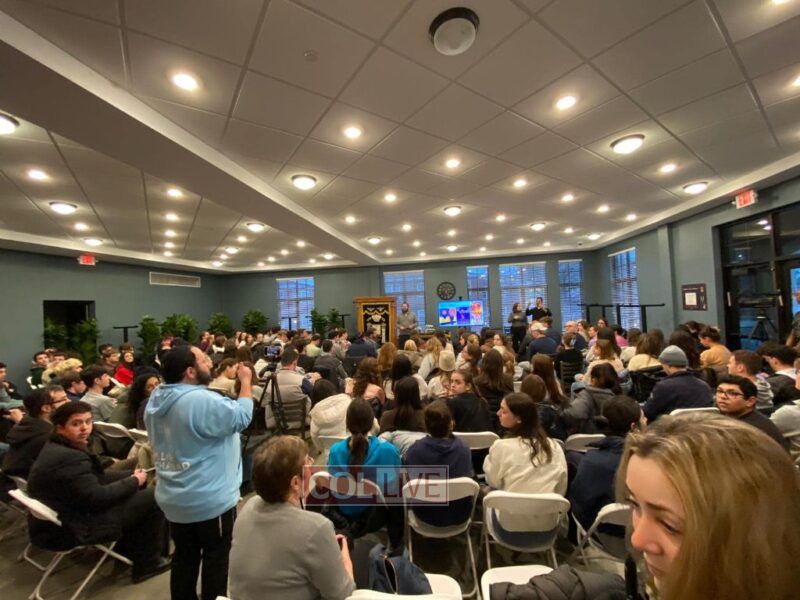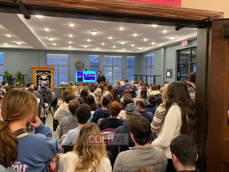 250+ students and community gathered last night at Illini Chabad and over 125 more parents and alumni gathered on zoom to hear from Rom El-Hai, a 29 year-old IDF reserve soldier from Natanya, Israel and survivor of the massacre of Simchas Torah, as he shared his story of courage and perseverance.