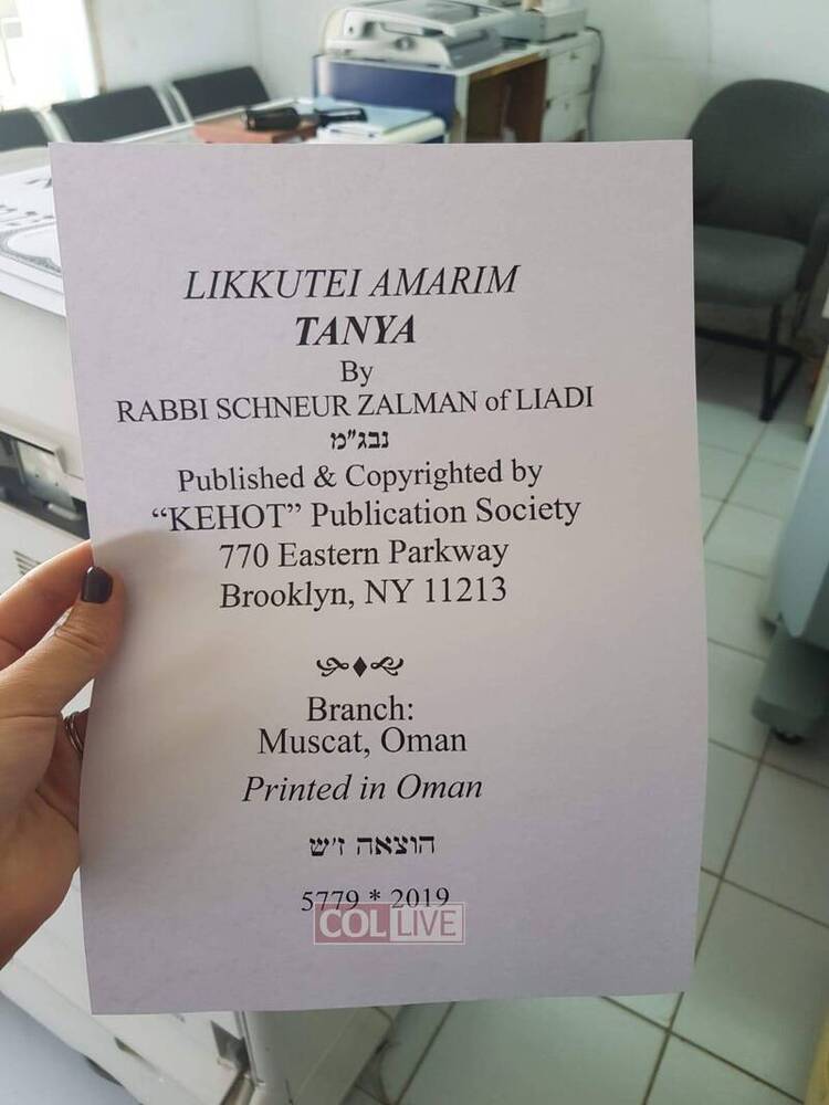 A Chabad couple who were in Muscat, Oman, took the opportunity to print the 7,300th edition of the Tanya in the Gulf country of Oman.