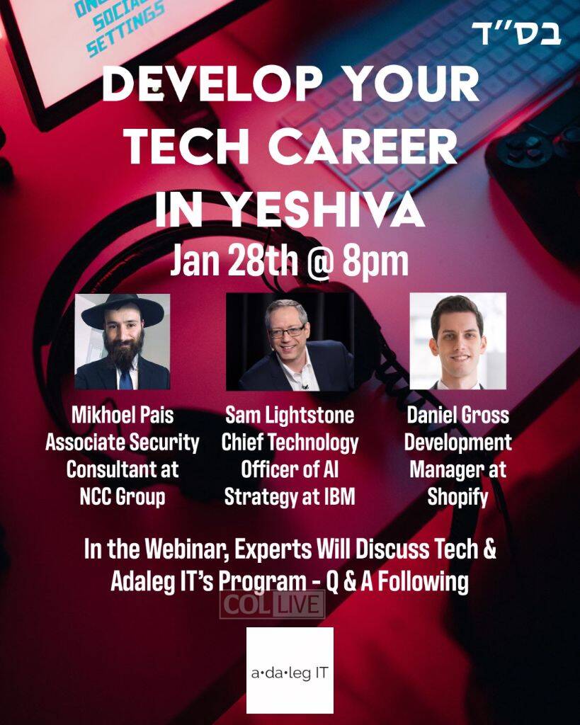 As an introduction towards this endeavor, there will be a Webinar on Thursday, January 28th at 8pm featuring three major professionals in the Tech Sector: Sam Lightstone, the Chief Technology Officer of AI (Artificial Intelligence) Strategy at IBM, Daniel Gross, Software Development Manager at Shopify, and Mikhoel Pais, Associate Security Consultant at NCC Group in Manhattan. Of note, Mikhoel Pais was a student in a 2018 Course that Adaleg IT ran at CHYE and went on to focus on Cybersecurity and find work in that sector.