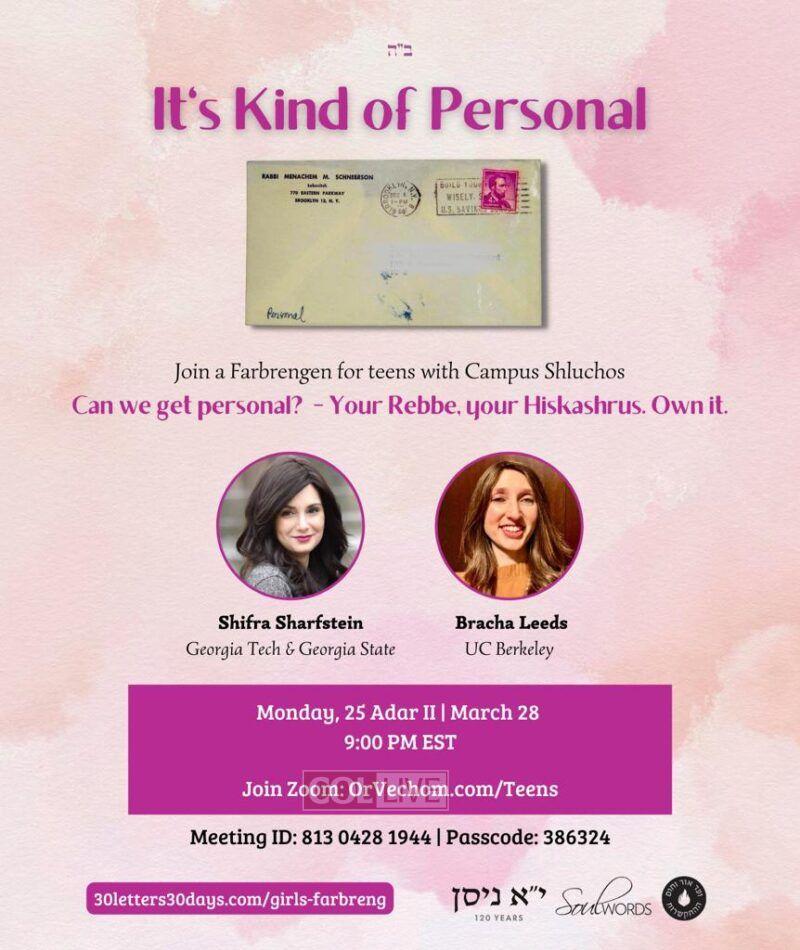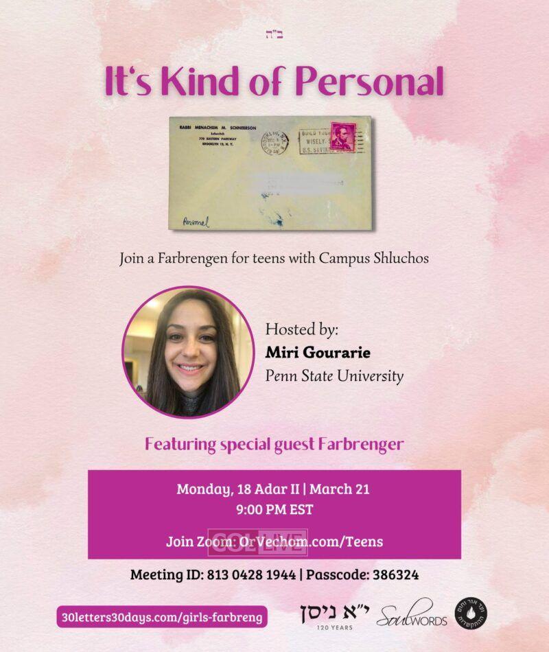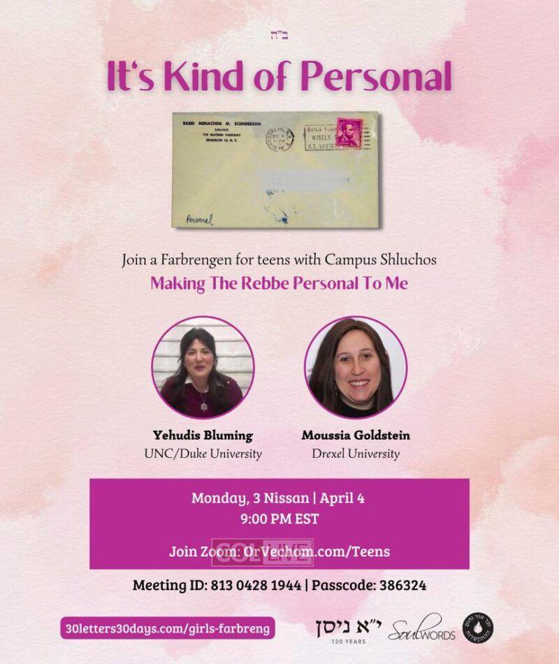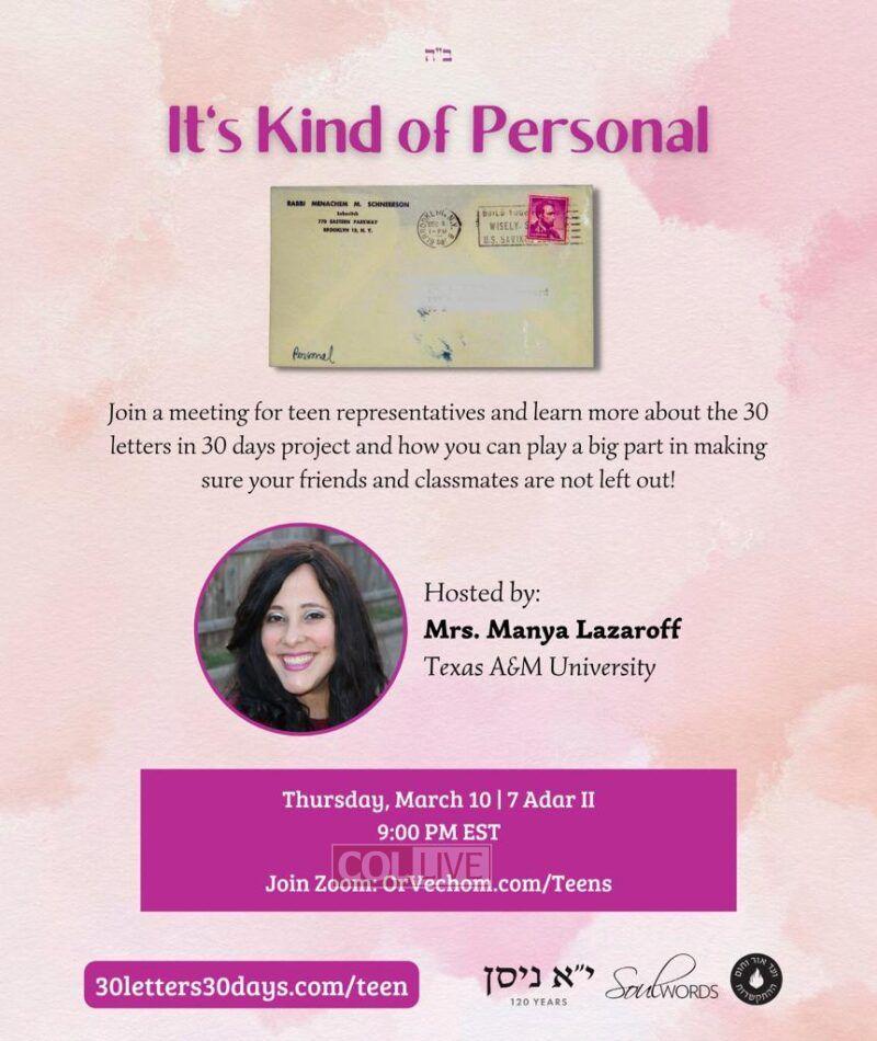 Teen girls across the world have expressed their excitement after joining a project to learn and farbreng about 30 letters of the Rebbe in 30 days, as a gift to the Rebbe for Yud Alef Nissan.