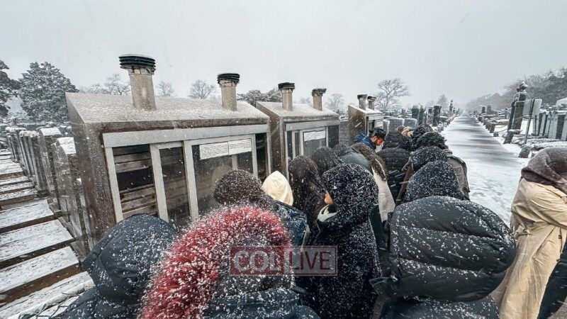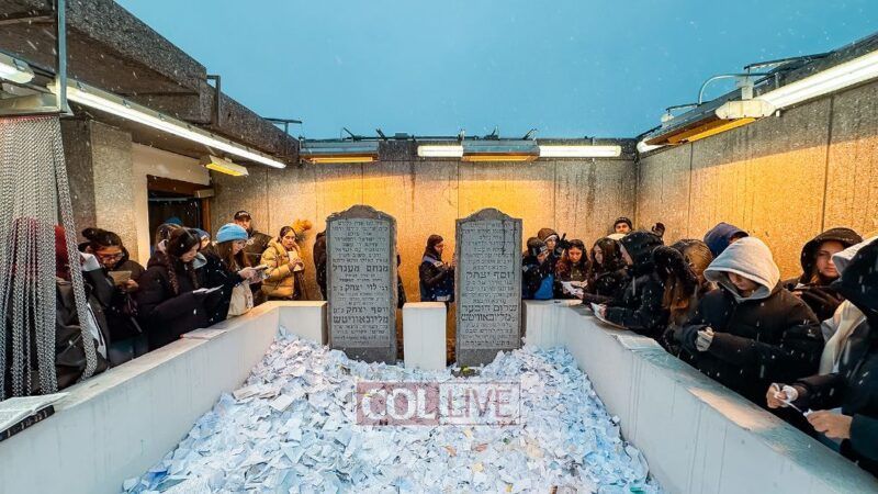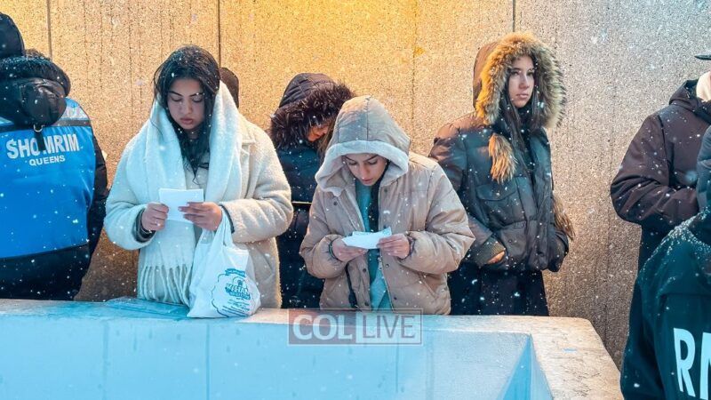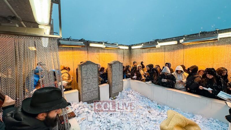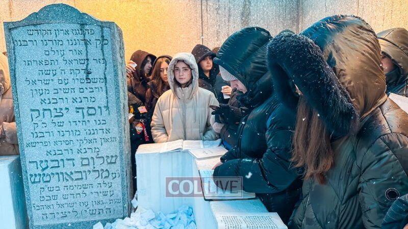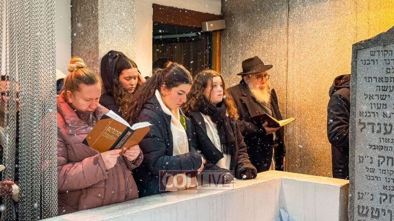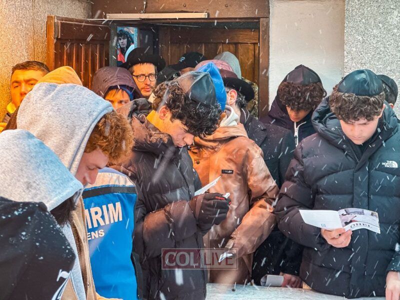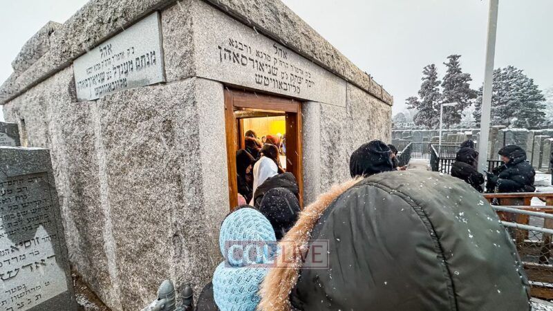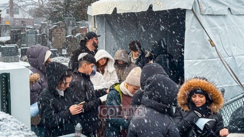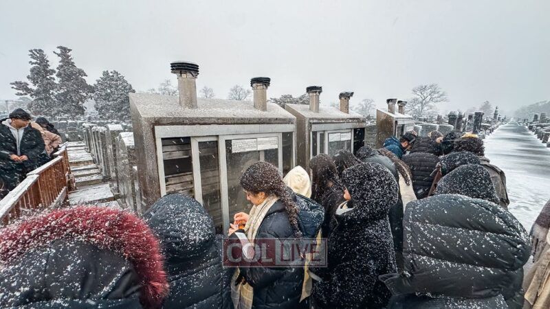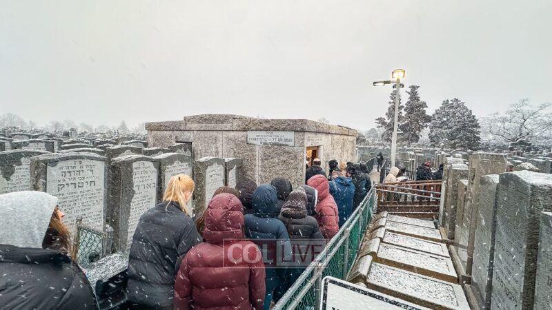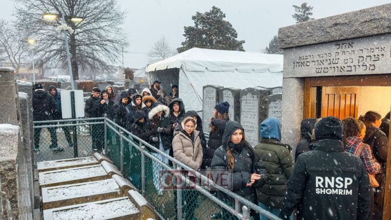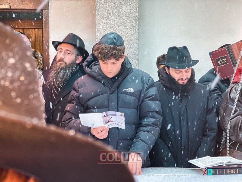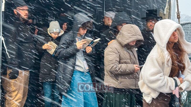 They boarded the buses and headed to the Ohel just as the snow began to fall. Bundled up in coats and scarves, they stood in line awaiting their moment.