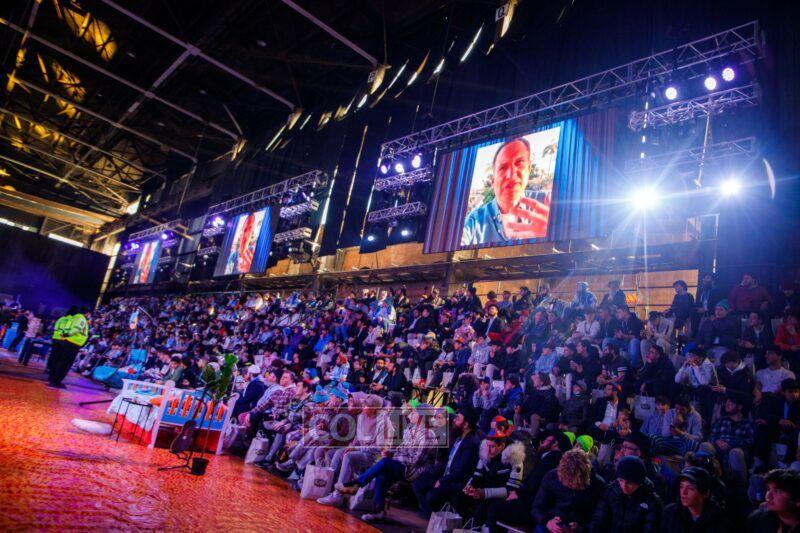 Rabbi Moshe Kotlarsky, vice-Chairman of Merkos L’Inyonei Chinuch, spoke from the runway and urged the crowd to give the Rebbe a birthday gift of 120 Million Mitzvahs. “You have the power to change the world,” he said, “not because you are the future leaders of the Jewish people — but because you are today’s leaders.” Rabbi Mendy Kotlarsky followed up on a commitment made at this year’s Kinus and announced another winner of a CTeen lounge, this time it’s for the chapter in Denver, Colorado.