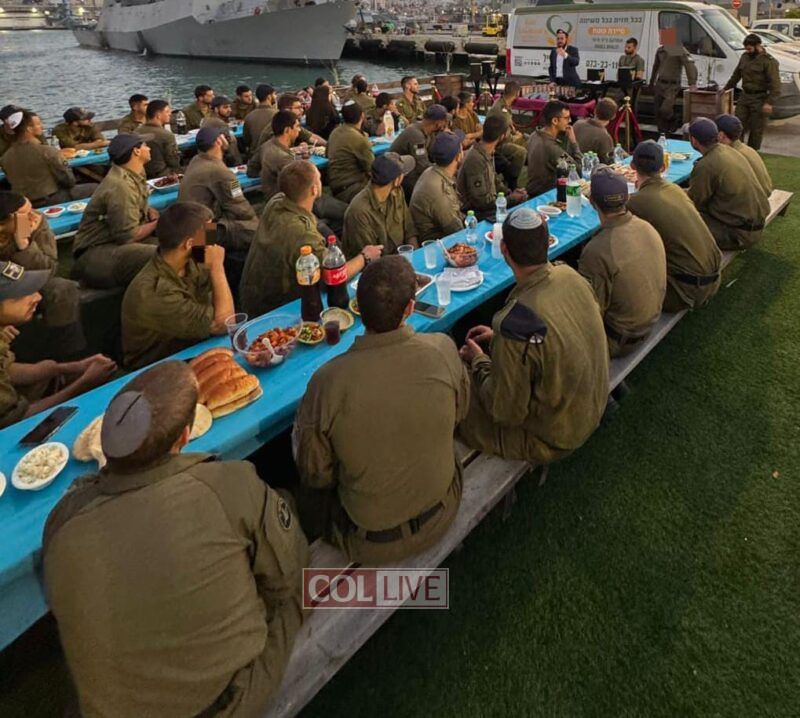 The ceremony at the base was a significant moment. “The soldiers of the Navy, warriors who are used to difficult missions, gathered around a festive table,” describes Eliyahu. “We distributed the tefillin to remain on the ships as a spiritual shield. Right before sunset, the soldiers put on tefillin, some for the first time. When they said ‘Shema Yisrael,’ it was a special occasion.”
