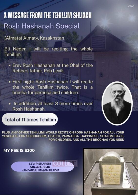 Any other location $65 and hour for driving plus Gas/Tolls and $150 to recited Tehillim.
