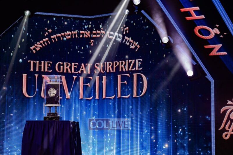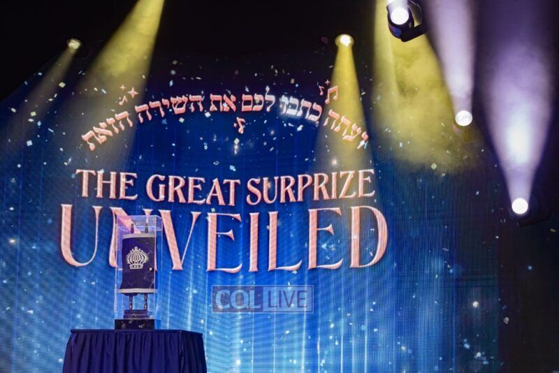 The highlight of the evening was the unveiling of the surprise grand prize – a brand new Sefer Torah which was completed during the event. Winner Moishe Rosenberg holds the unique privilege of dedicating the Sefer Torah, culminating with the joyous Hachnasas Sefer Torah – the ceremonial Hakofos during the Torah’s first entrance into Shul.