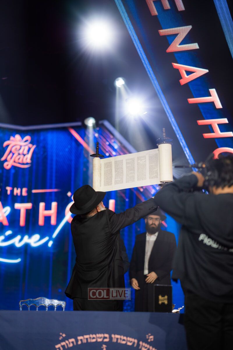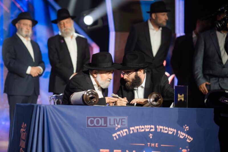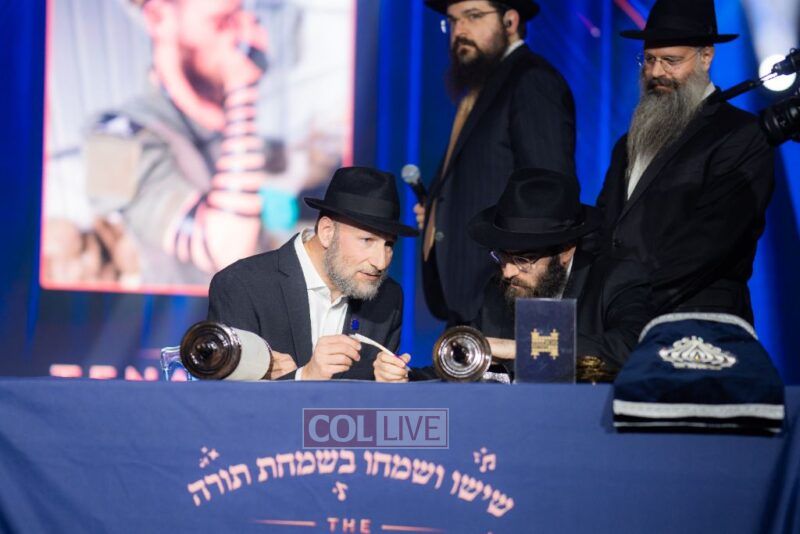 As the night came to a climax, the fathers and Zaidy of several brave Chayolim fighting on the front lines took to the stage to complete the Sefer Torah – the grand mystery SURPRIZE. Following Hagbah, Shloime Daskal and Benny Friedman sang a beautiful rendition of Sisu Visimchu Bisimchas Torah, invigorating us with true Simcha and the feeling that Am Yisroel will prevail!