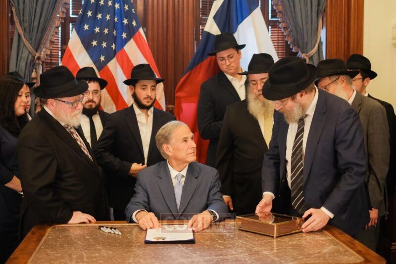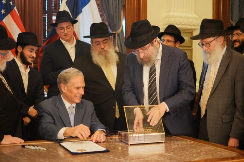 Prior to the signing, Rabbi Leibel Lazaroff met privately with Governor Abbott together with his parents, Rabbi Yossi and Manya Lazaroff of Chabad at Texas A&M. Rabbi Leibel spoke with the Governor about his experience surviving the Bondi attack during Chanukah and about the heightened gratitude for daily life that emerged from that experience. Also present at the private meeting were Kenny Goldberg and Joy Nathan of the Texas Holocaust, Genocide, and Antisemitism Advisory Committee.