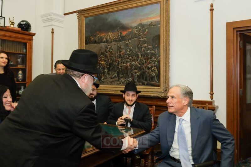 A delegation representing the 140 rabbis and rebbetzins of the 43 branches of Chabad across Texas met today with Governor Greg Abbott as he officially proclaimed Sunday, March 29, 2026, as Education and Sharing Day in the State of Texas.