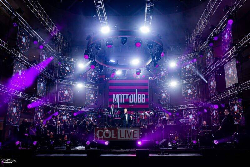 Starring on stage were Berry Weber, DJ Matt Dubb, Joey Newcomb of “Thank You Hashem” fame, Baruch Levine, Uri Davidi, Yoni Z, Yaakov Shwekey and Avraham Fried accompanied by a 25 person orchestra and the Six13 men’s choir.