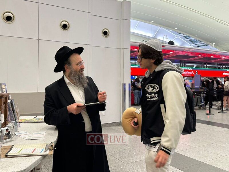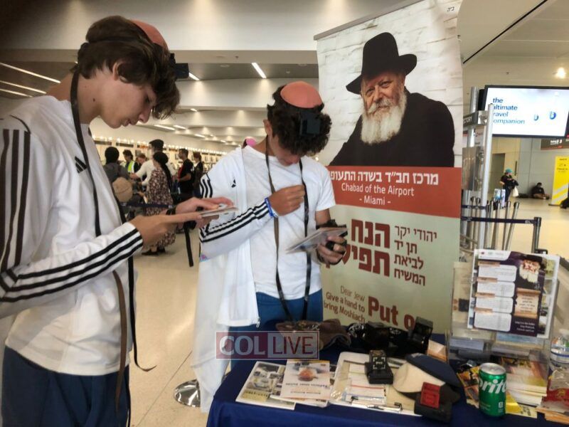 If you enter the airport and head towards security, you’ll find a passionate group of men standing beside a humble information desk. The sign reads “Chabad Air,” and the goal is to offer Jews passing through the airport the opportunity to do a mitzvah.