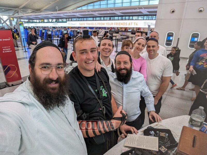 That day, Spencer puts on tefillin for the first time in his life. While he recites Shema Yisroel, surrounding passengers watch the spectacle. Many are moved by the experience and request to lay tefillin as well. But a few minutes later, it’s time for boarding. Following a quick thank you, Spencer is off to his flight. Shortly after, Menachem finishes his shift and heads back to Crown Heights. Apart from the selfie they snapped, it seemed that the story would end there.