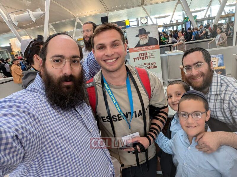 Somewhere in the crowd, a young man begins his early morning shift. It’s a Sunday morning, and while the rest of the city is still asleep, Menachem Engel and his colleagues are already at the airport bringing inspiration to Jewish passengers.