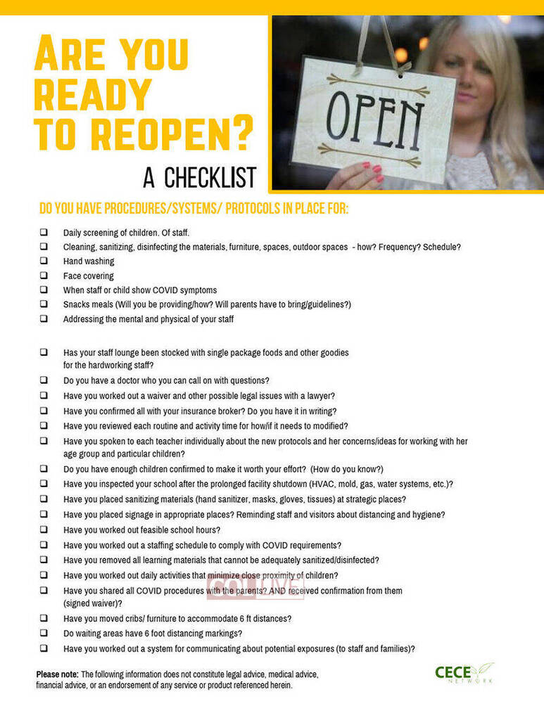We care about your Mosed too, and in response to states slowly opening back up The CECE Network has compiled a complete packet with everything you need to know to ensure that your preschool is “reopen ready.” We have addressed all the necessary health and safety measures for schools to adopt in order to reopen safely.