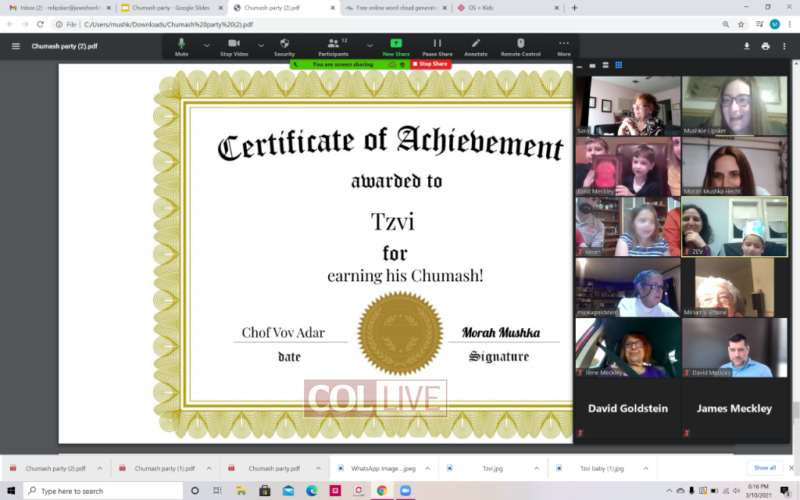 Tzvi is a six year old boy living in Texas. He is one of three siblings who attend the Nigri International Jewish Online School of the Shluchim Office. Last week, Tzvi and his class reached an important milestone; after reaching fluency in Keriah, they had a Chumash party to celebrate the beginning of starting Chumash.
