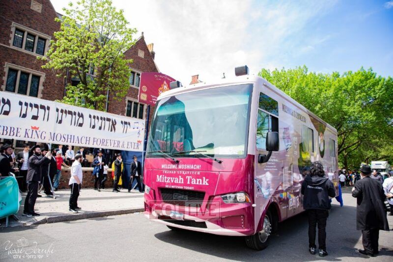 Held in front of Lubavitch World Headquarters at 770 Eastern Parkway in Brooklyn, NY, the parade was organized by the NCFJE organization and included words of Torah, uplifting music and displays of Judaism.