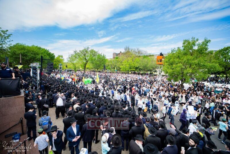 Thousands of Jews of all ages gathered together on Tuesday to celebrate the yartzeit of Rabbi Shimon Bar Yochai in true Chabad tradition – a stunning spectacle of joy, energy, and Jewish unity.