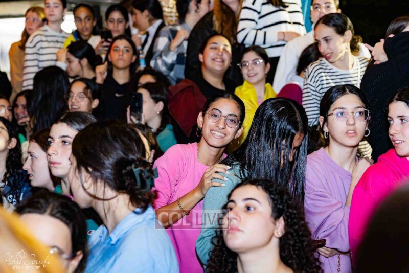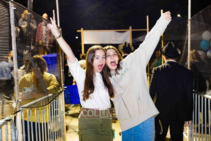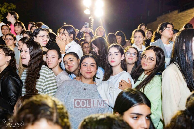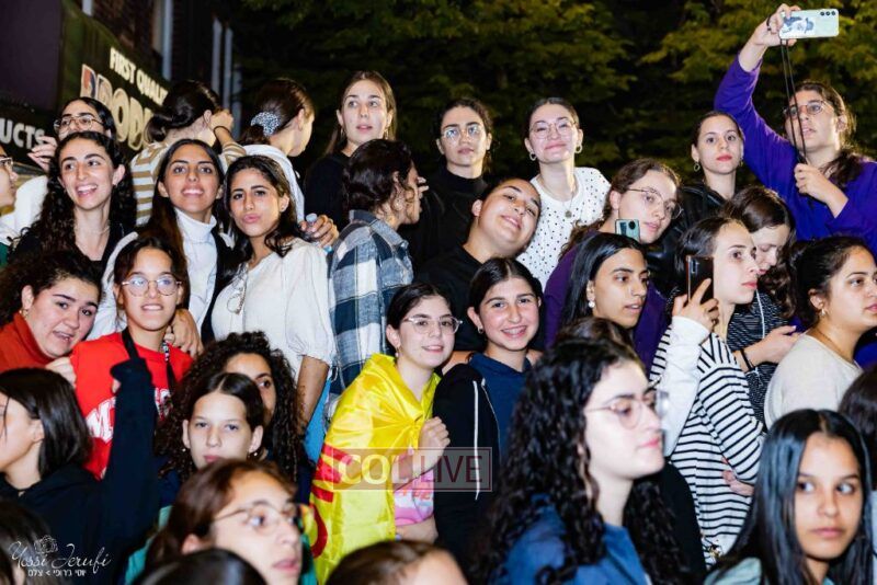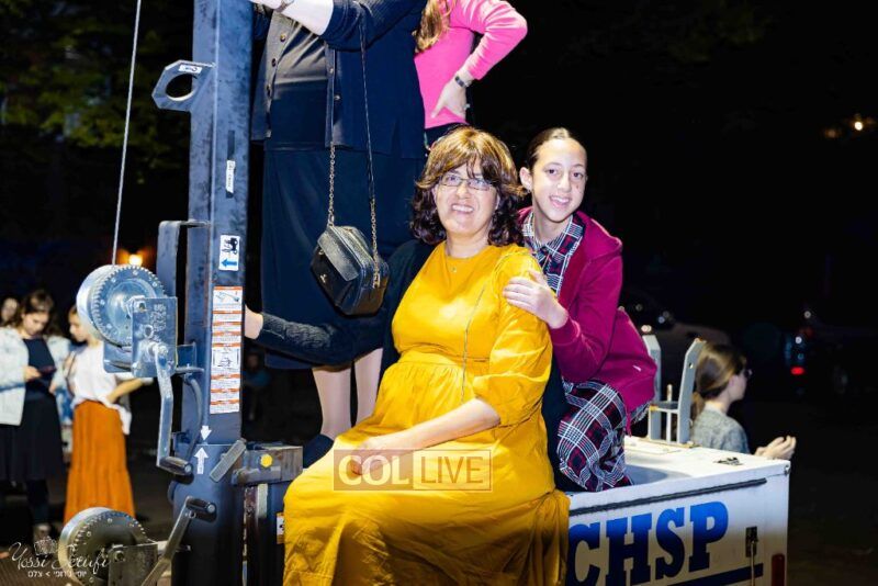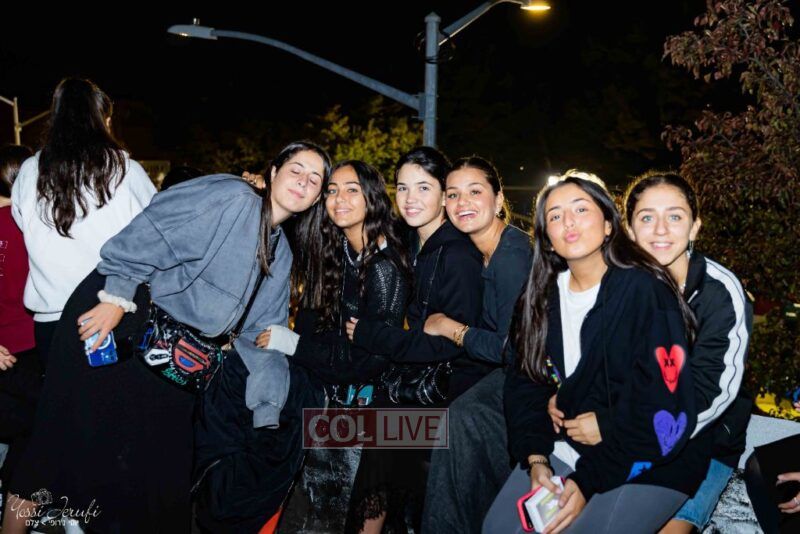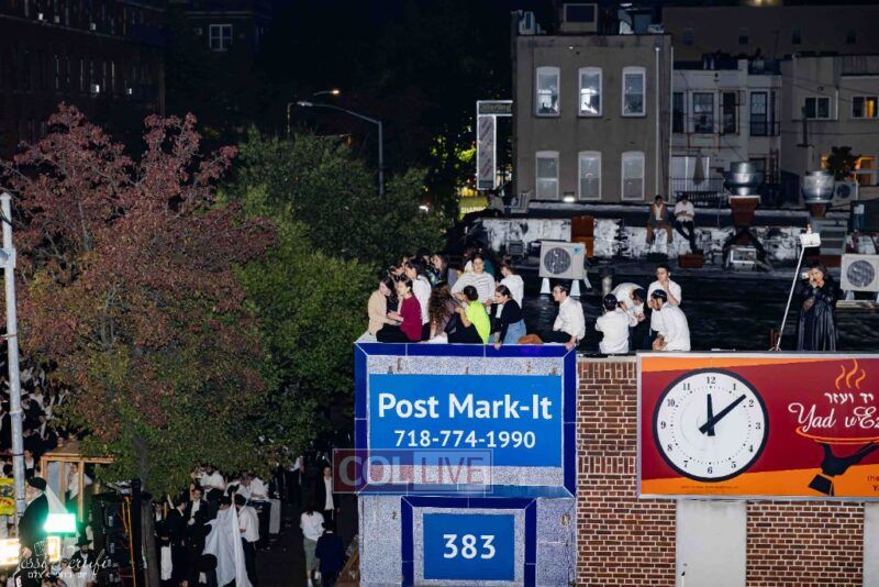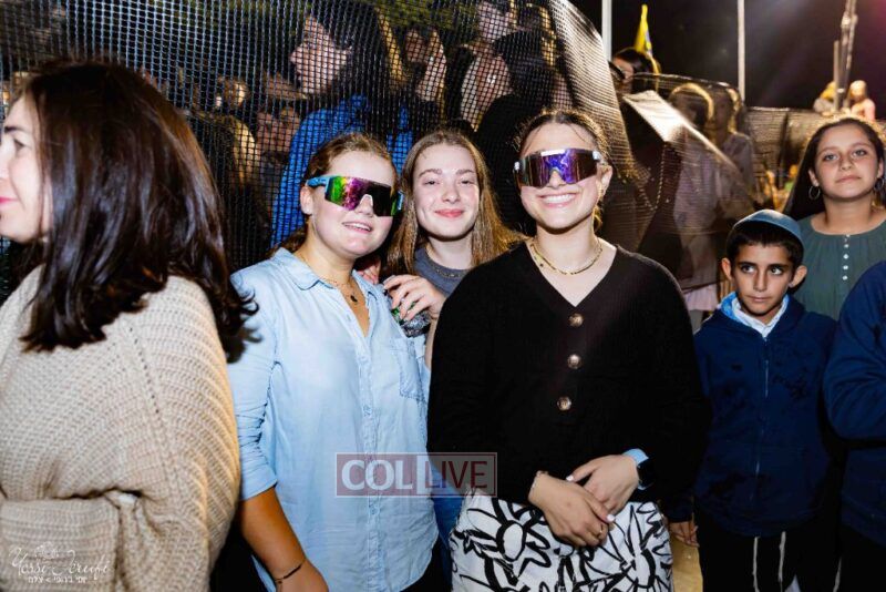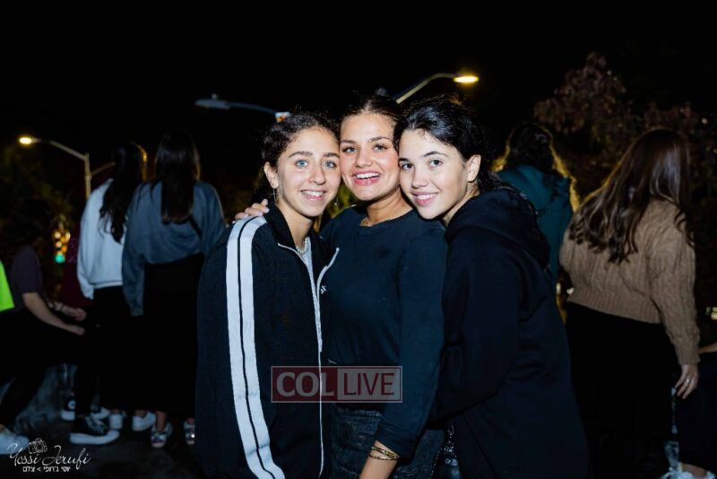 Women and girls were present as Chassidim and bochurim danced on Kingston Avenue during the nightly Simchas Beis Hashoeva celebration in Crown Heights on Tuesday. Photos
