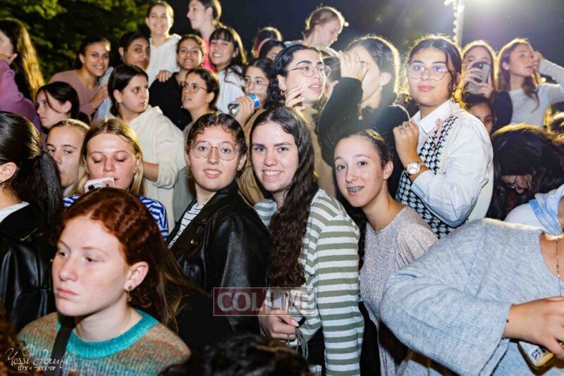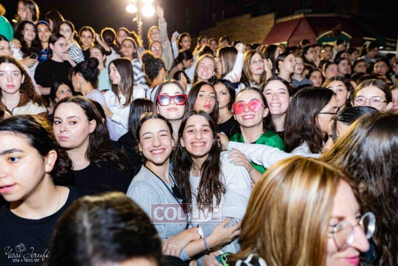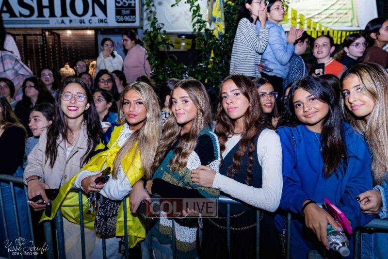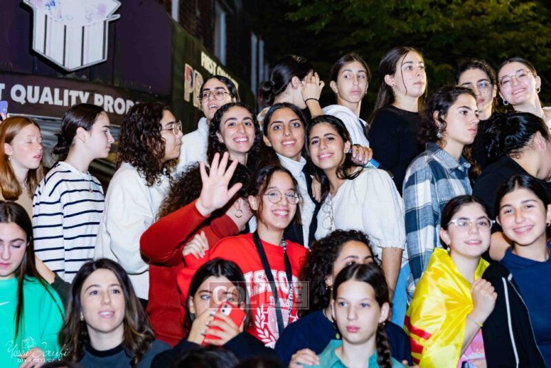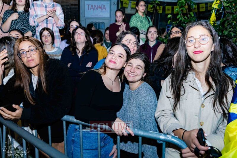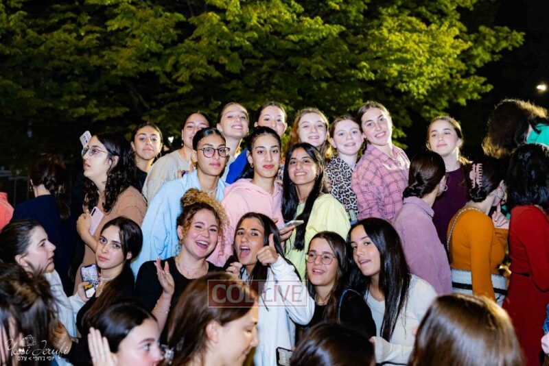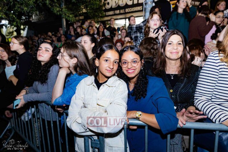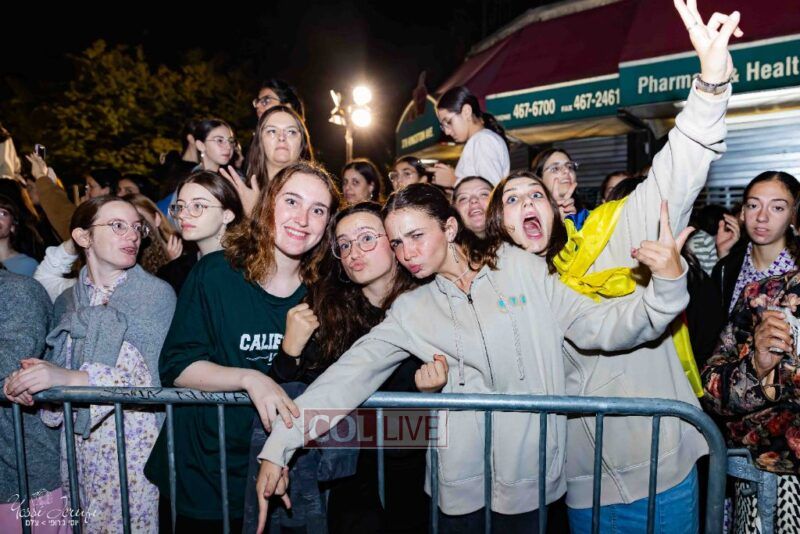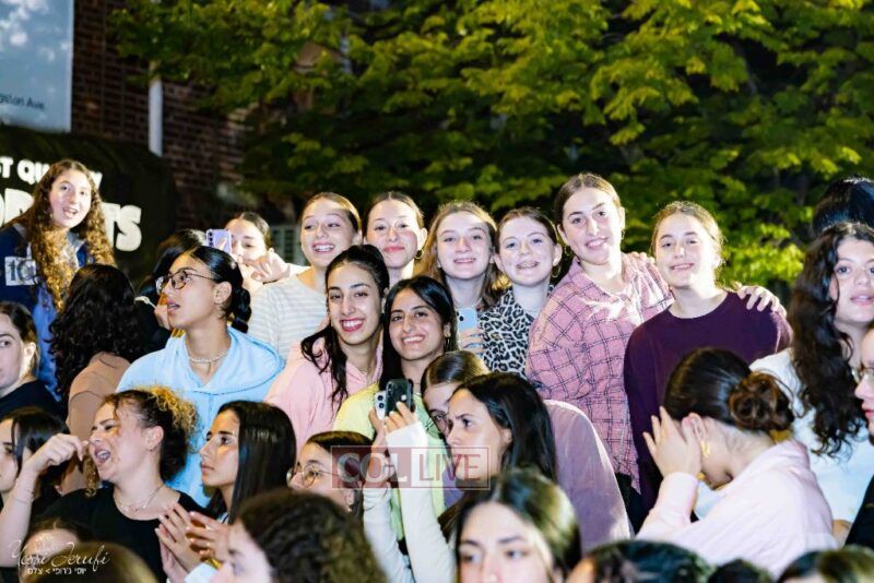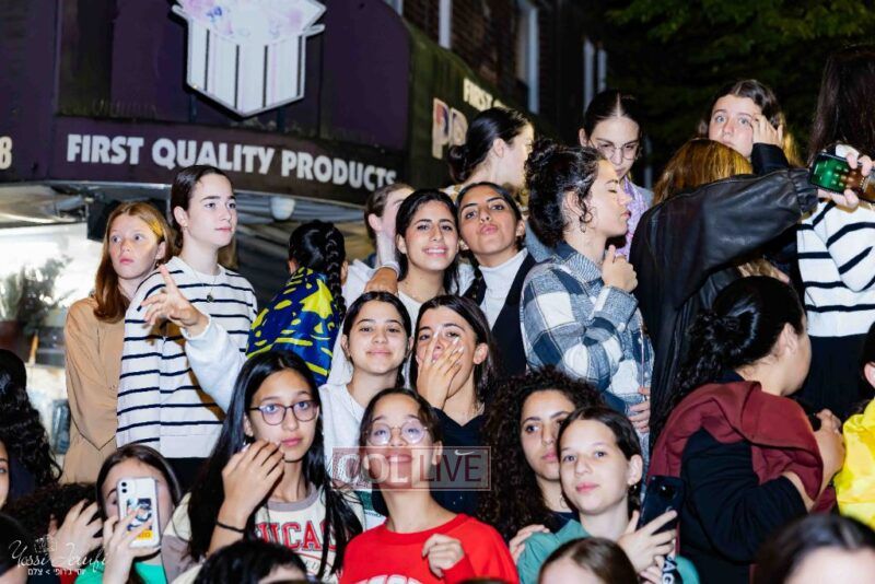 Women and girls were present as Chassidim and bochurim danced on Kingston Avenue during the nightly Simchas Beis Hashoeva celebration in Crown Heights on Tuesday. Photos