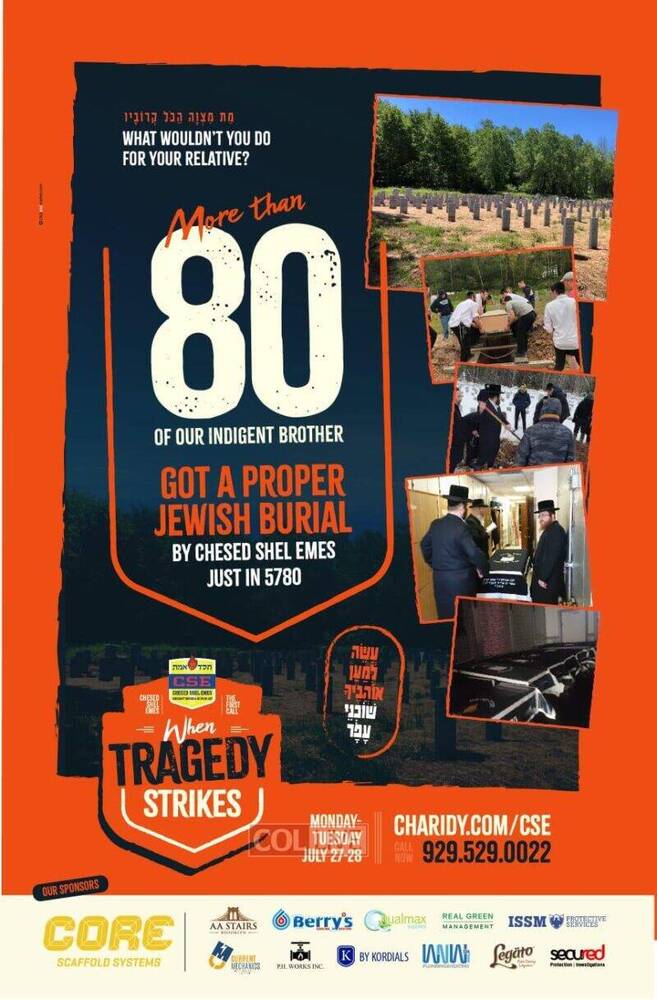 “Aside from that, during those weeks, Chesed Shel Emes buried in their own cemetery 38 Meisei Mitzva who had no one else to pay for their burial, bringing the total Meisei of this year alone to 81.”